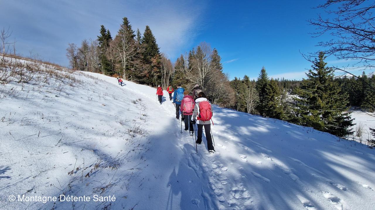 Les neuf autres repartent "cahin caha" dans une forêt sombre, venteuse et bien froide jusqu’au parking ; pause bistrot où les courageux sont attendus pour le retour à Meaudre.