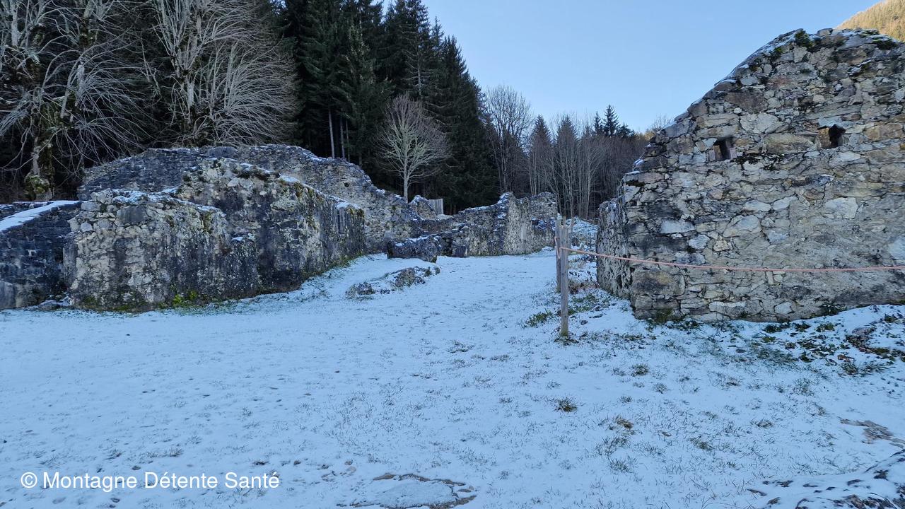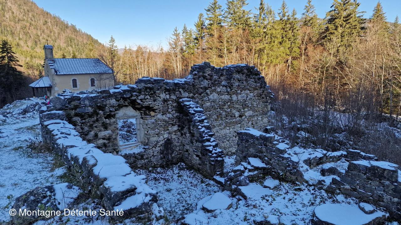 Ensuite, direction de Valchevrière par le chemin de croix, jusqu’au site historique du village en ruine. Seule La Chapelle reste entière et nous offre une crèche en bois magnifique.