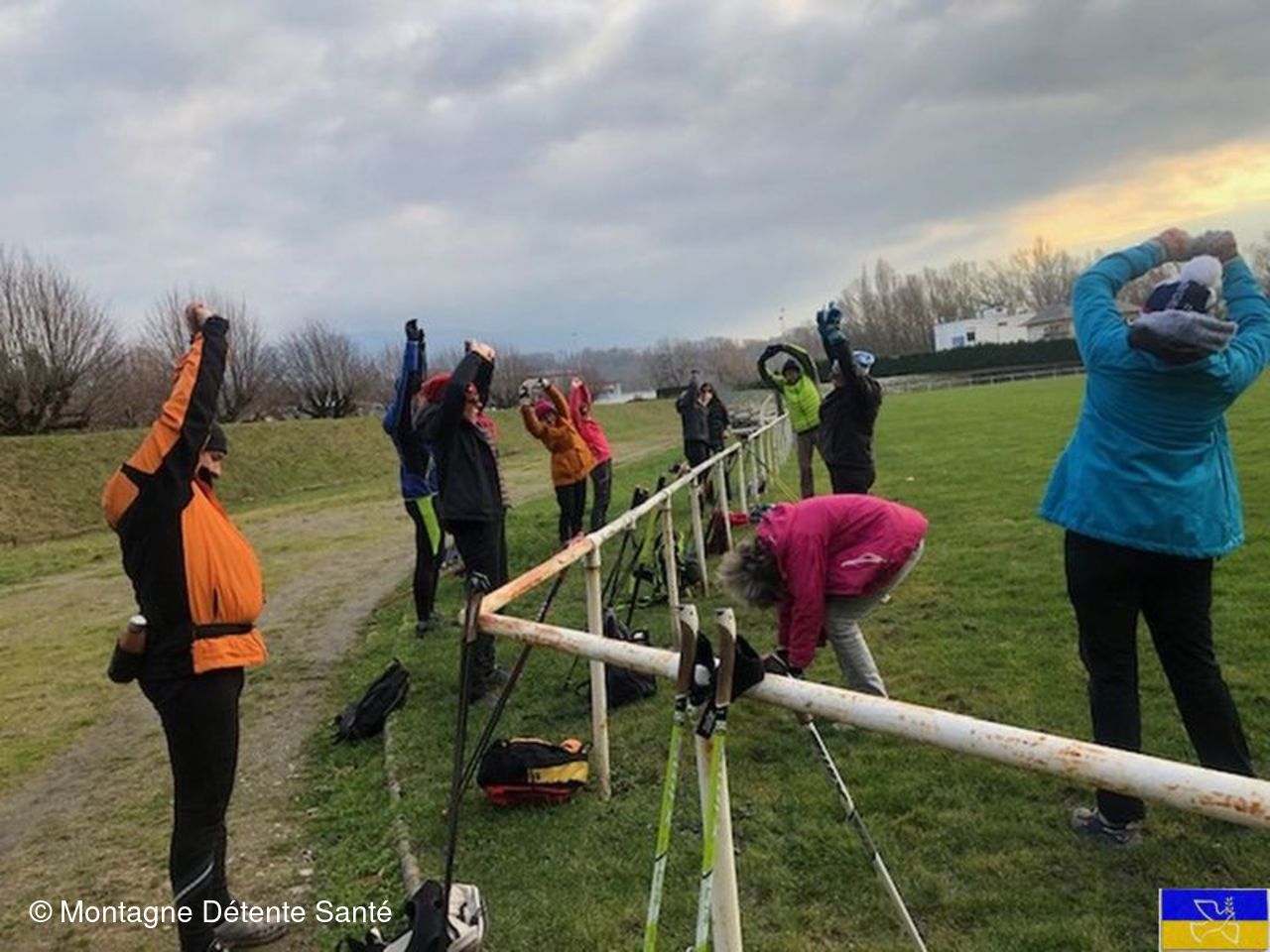 Il fait bien froid cet après midi, mais qu'importe, rien ne fait peur au groupe de marcheurs; les échauffements se feront en dynamique au départ du parcours.
