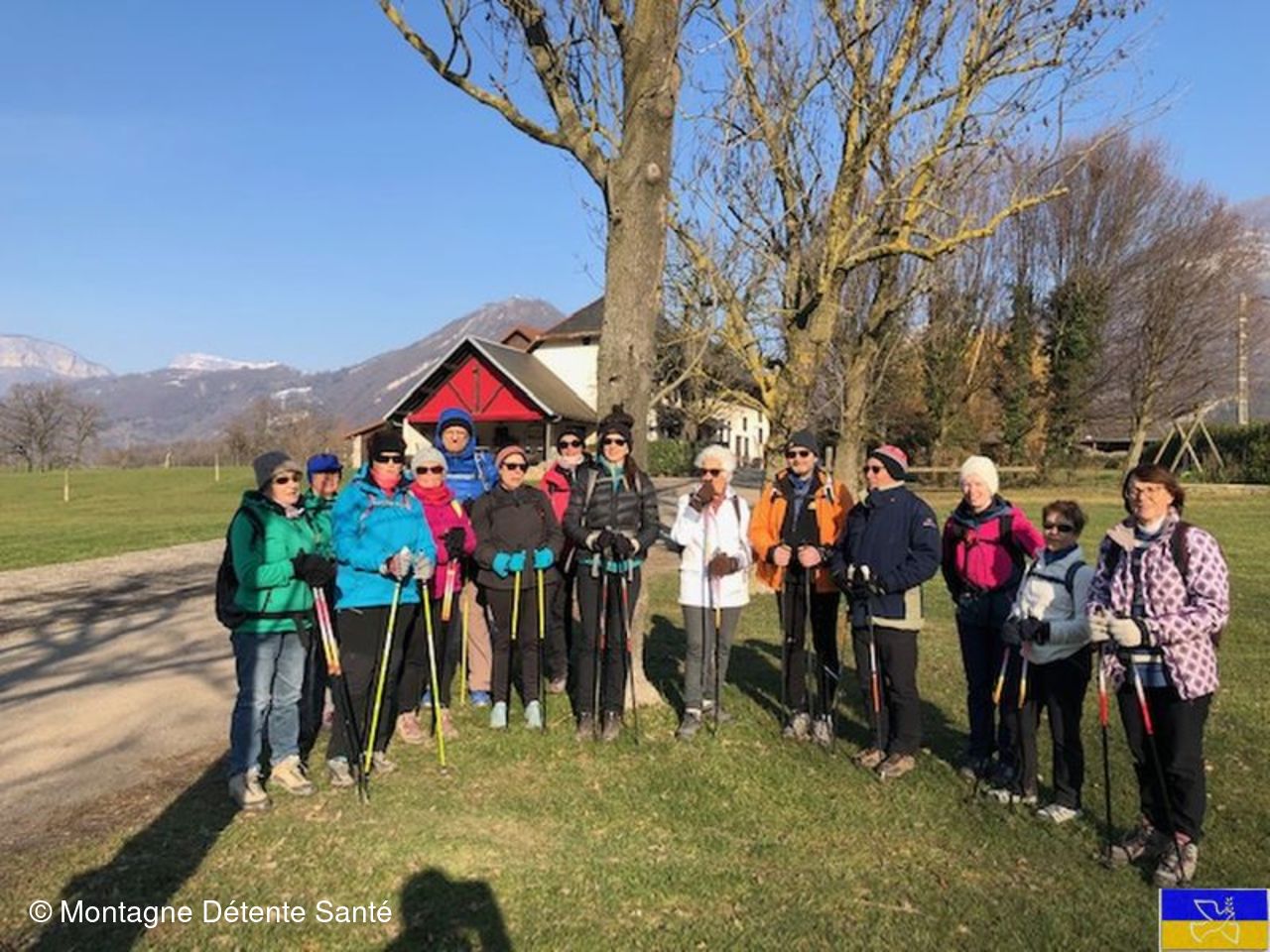 Aujourd'hui, nous sommes à la fête car la météo est idéale pour notre marche nordique du jour avec un beau soleil hivernal sous une piquante bise de temps en temps. Pour cette fois, nous allons effectuer notre tour de St Jeoire-Prieuré dans le sens trigonométrique, c'est à dire à l'inverse du cheminement traditionnel.