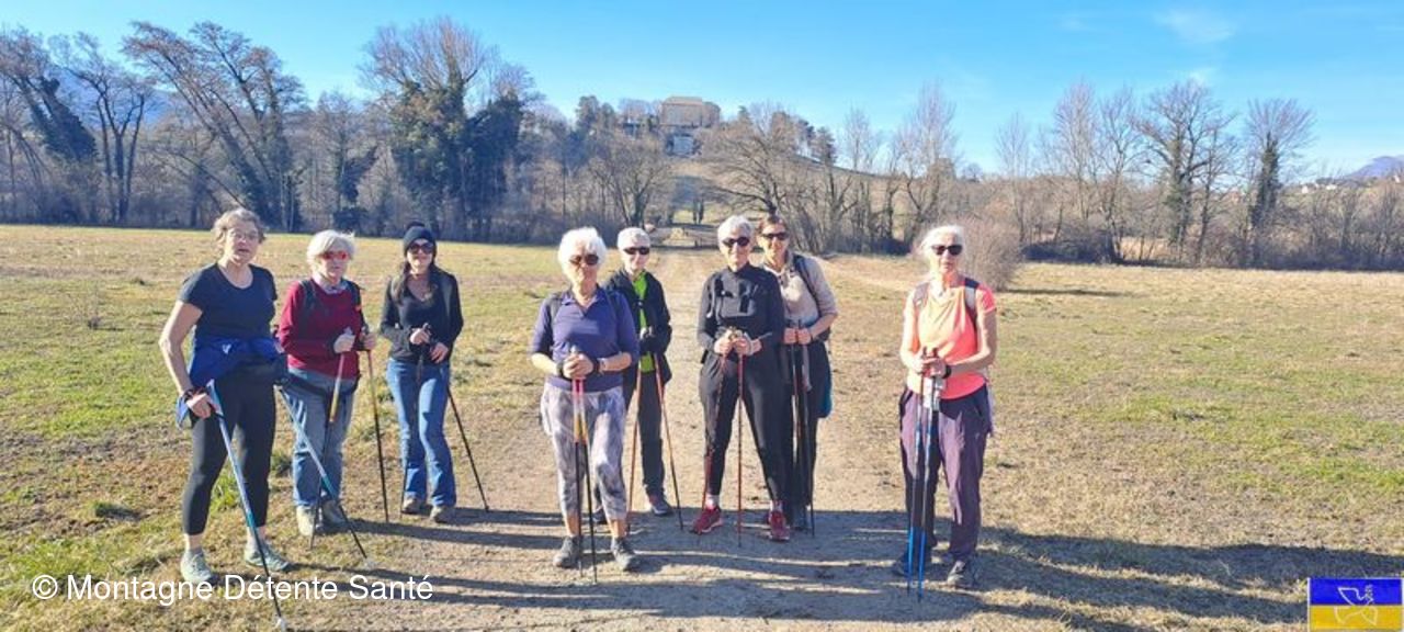 Nous descendons vers la plaine. Nous prenons à gauche le chemin en lisière qui passe vers les maisons de la Carrière. Puis, nous traversons "la Forêt" et arrivons bientôt au croisement du "Chemin de la Forêt". Nous allons à gauche pour rejoindre "le chemin de Bois Vert". Nous arrivons bientôt au centre équestre de Champlong. Nous prenons le temps pour nous désaltérer et faire une séance de renforcements musculaires : squats (cuisses), pectoraux et biceps/triceps. Nous traversons le hameau de "Murs" par le chemin du même nom puis nous repiquons vers la plaine par le "Chemin de la Forêt" et remontons par le chemin qui passe sous le château Notre-Dame de "Les Marches" (ou encore Costa de Beauregard). Nous passons par celui-ci et revenons, en traversant le vieux bourg, à notre point de départ.