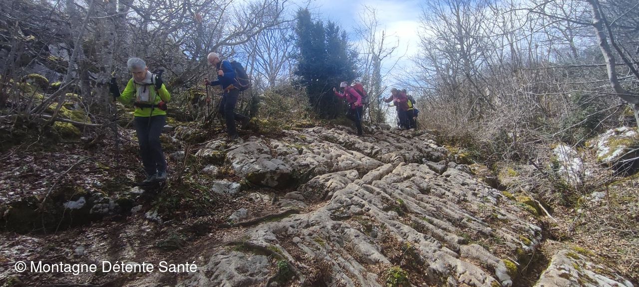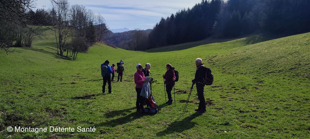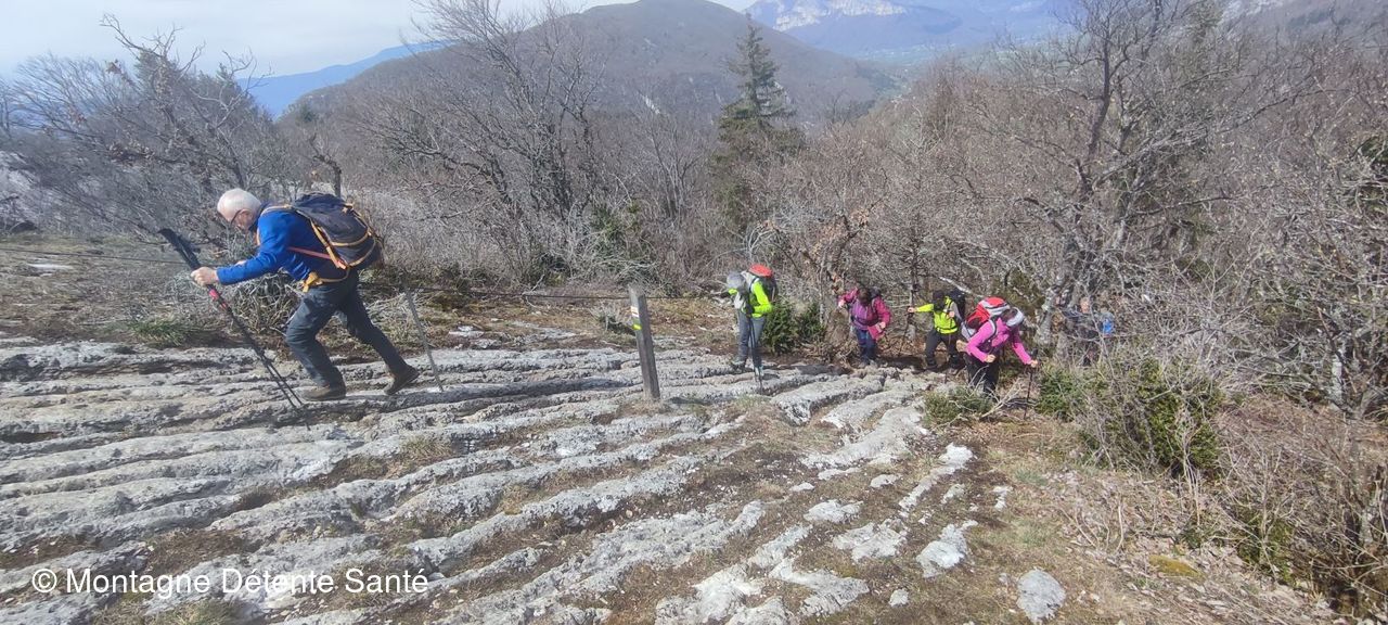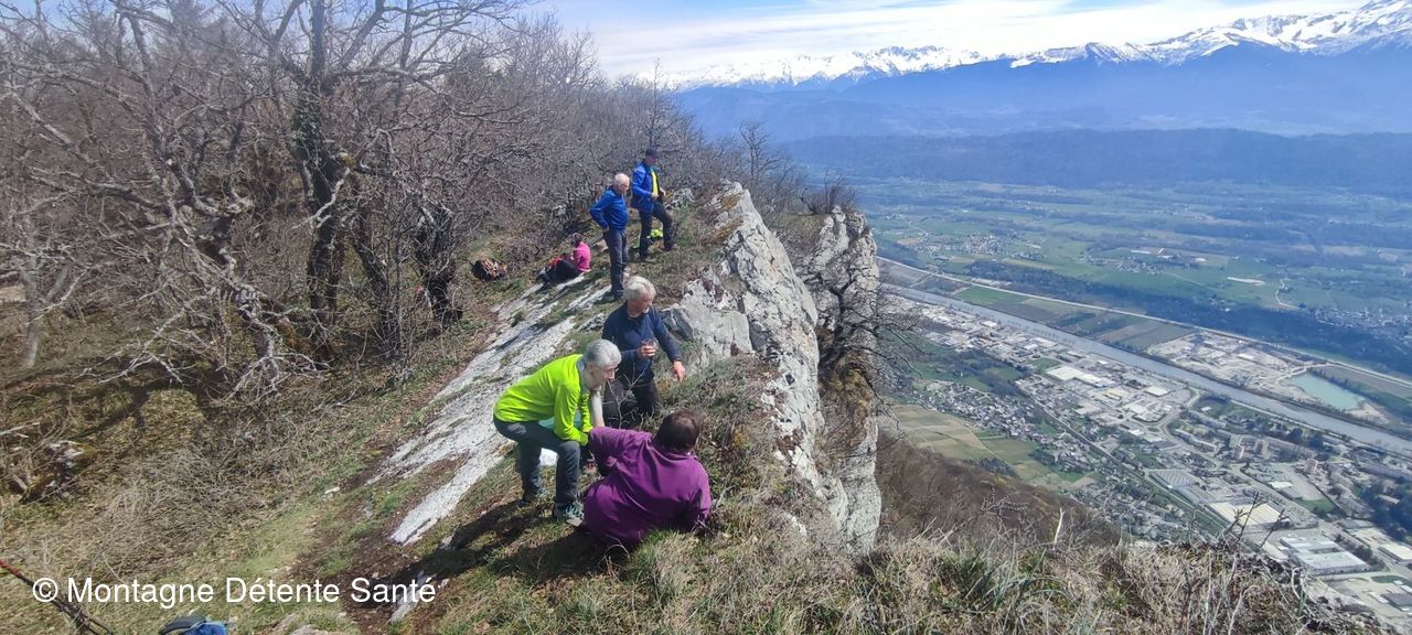 Après avoir observé le paysage côté Belledonne direction la Roche du Guet par la crête avec encore des lapiaz où il fallait rester bien vigilant. Toujours en suivant cette crête nous avons atteint le rocher de Manettaz et son point de vue, puis le col du Mont avant de redescendre au hameau du lac et de revenir au parking.