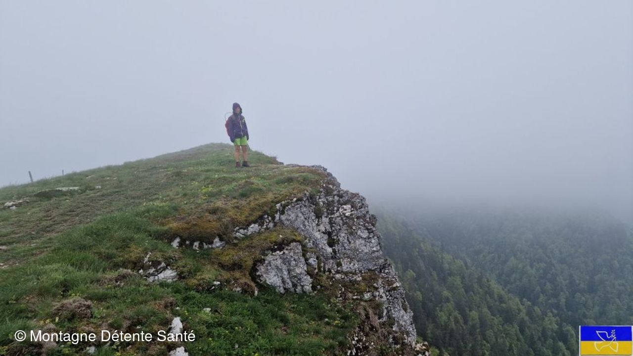 La pluie cesse enfin et le soleil fait son apparition pour nous aider à monter, par un sentier assez raide, jusqu'à la Croix du Grand Colombier.