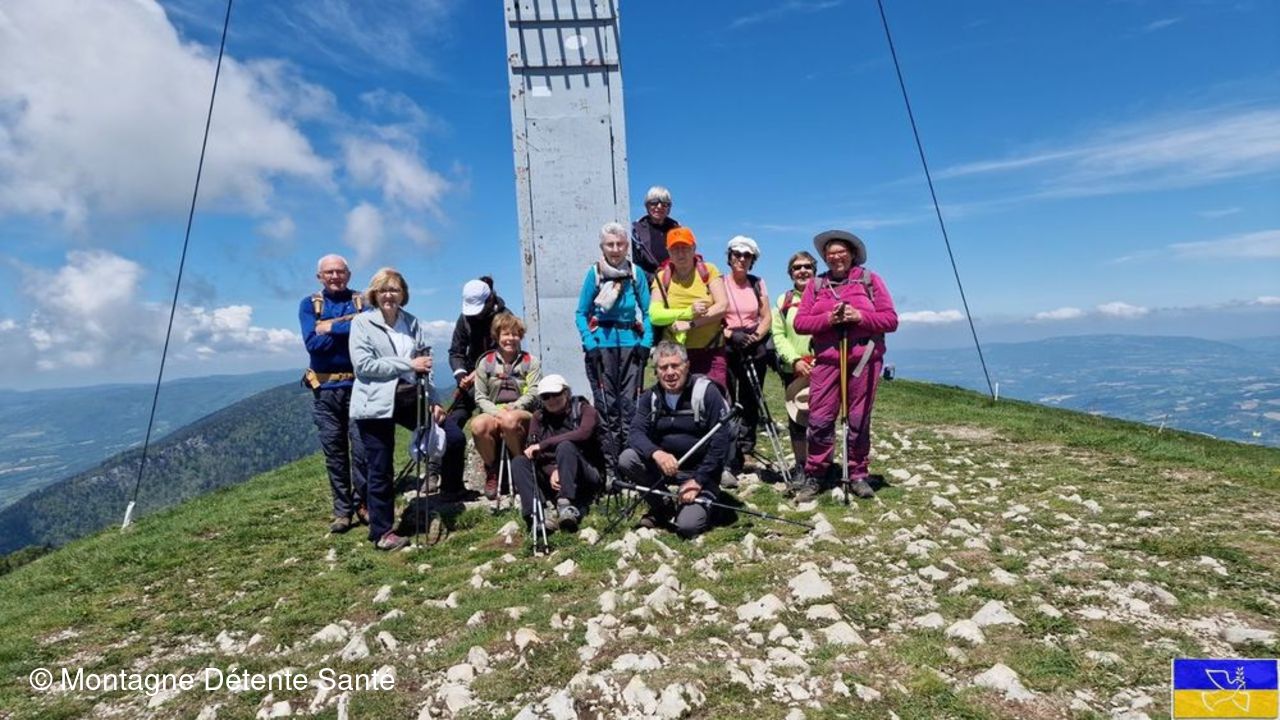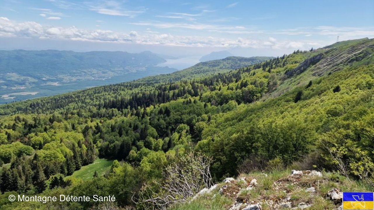 Une table d'orientation nous permet de situer les sommets et d'admirer le panorama du lac du Bourget,l e Rhône et plus loin les gorges du Fier.