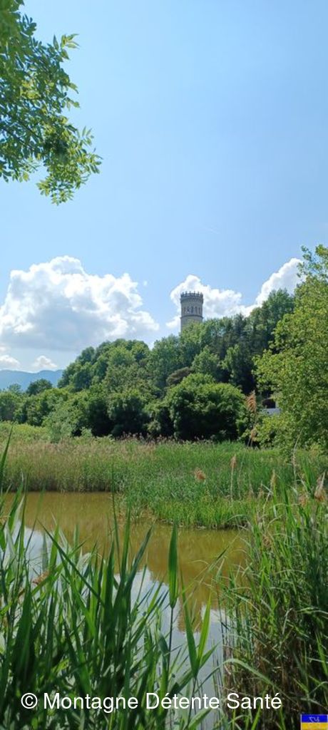 Notre pause renforcements musculaires se déroule au bord de l’étang de St Maximin, sous la tour.