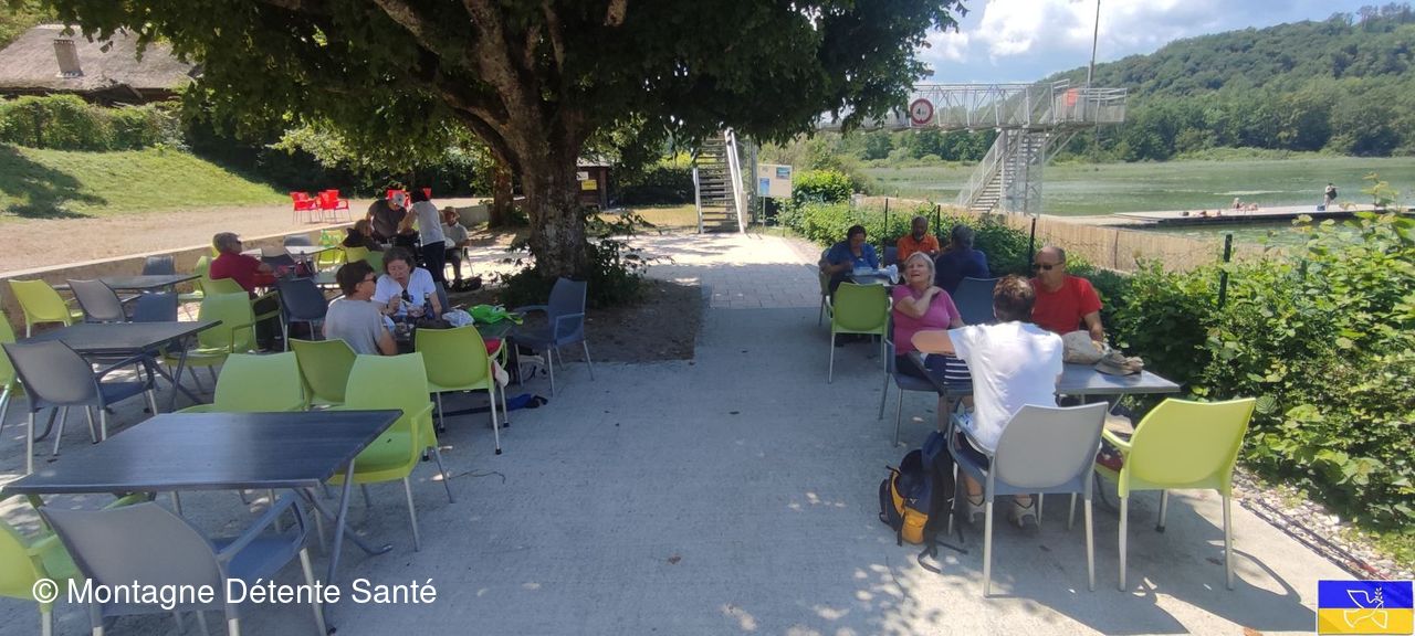 En longeant la rive Ouest nous avons atteint la plage coté Est où nous avons pu prendre notre pique-nique confortablement assis à l’ombre d’un tilleul sur la terrasse du restaurant de la plage qui venait d’ouvrir pour la saison.