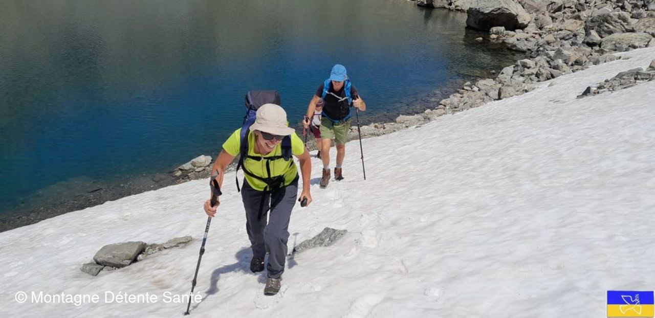 Nous descendons en direction du lac de Sambuis qui nous offre un beau cadre pour le pique-nique. Après cette sympathique pause, nous poursuivons par le col de Sambuis avant d’atteindre le lac de la Croix, le paysage est magnifique et très sauvage comme souvent en Belledonne. La suite de la descente est un peu chaotique, les pierres ne manquent pas ici.