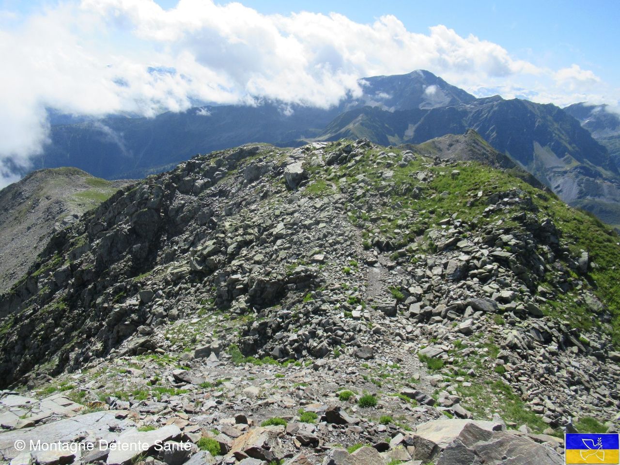 Le retour se fait par une sente marquée et une progression dans un pierrier ponctué de cairns jusqu'au col de la Bathie et retour au parking.