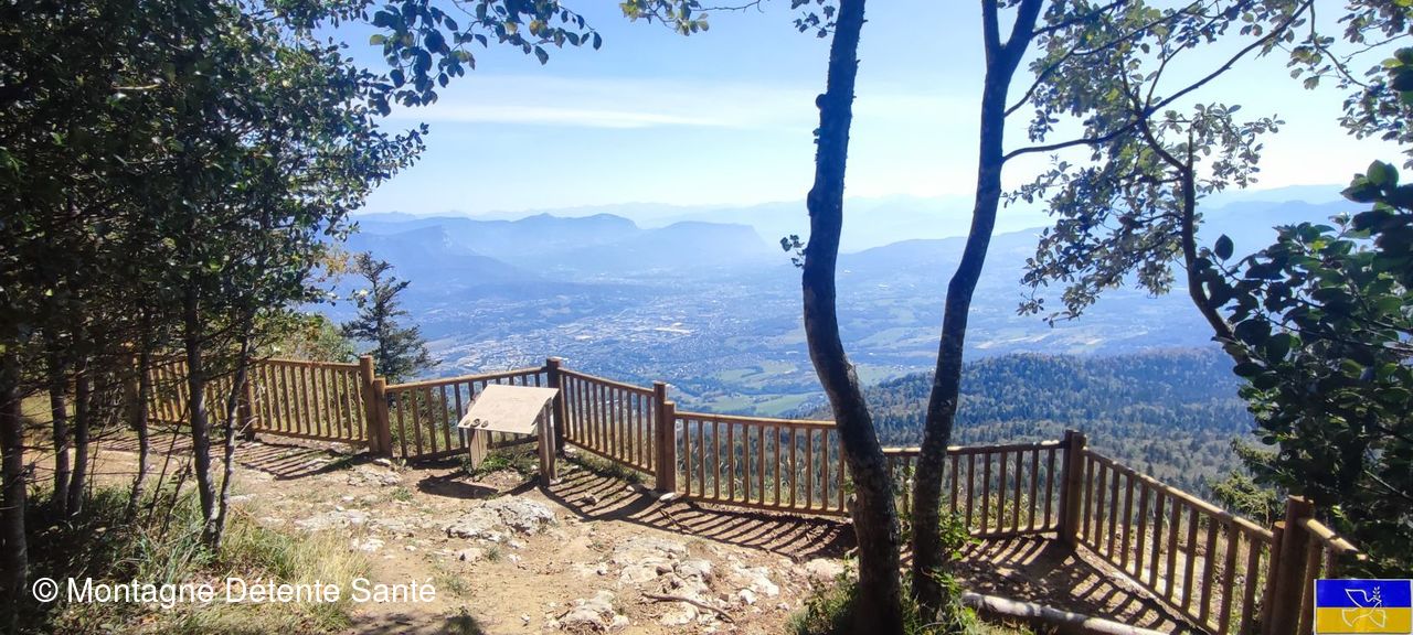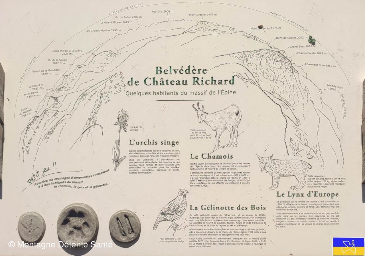 En poursuivant au sud après avoir dépassé « La pierre gravée » nous avons atteint « Château Richard » avec son belvédère face au massif de la Chartreuse et cette fois-ci le lac d’Aiguebelette en contre bas.