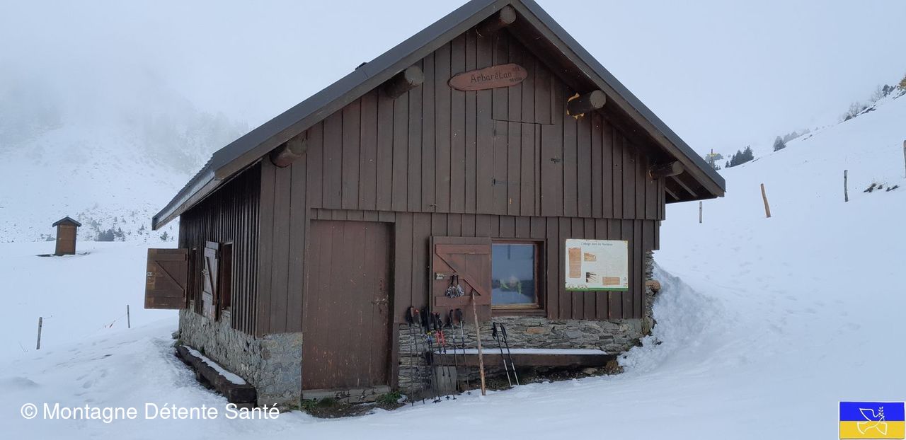 Nous arrivons sans encombre au refuge de l’Arbaretan. Le pique-nique se fera à l’abri. La réserve de bois est conséquente et nous allumons un bon feu qui nous réchauffe.