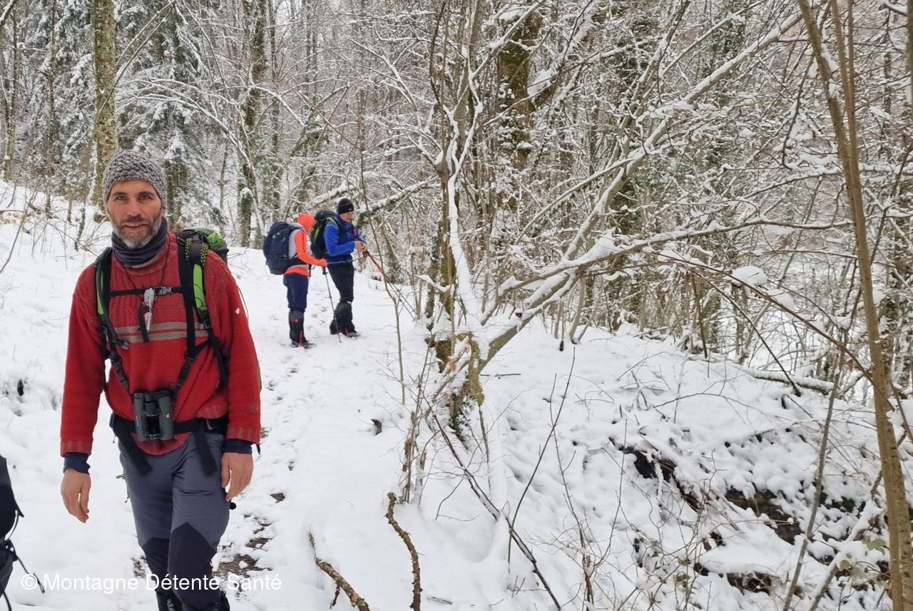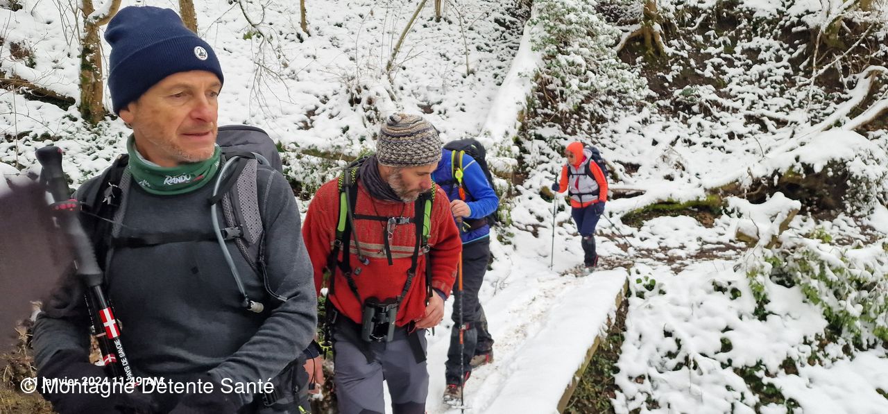 La neige tombée ces derniers jours à rendu les sentiers boueux mais praticables. Descente assez prononcée en direction du "trou de l'enfer" où gronde la Leysse.
