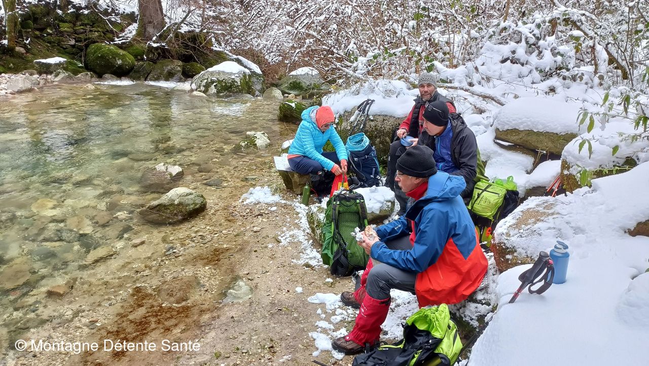 Nous prenons notre repas bien installé sous la passerelle et au bord de l'eau. Un peu fraiche pour se tremper les orteils !