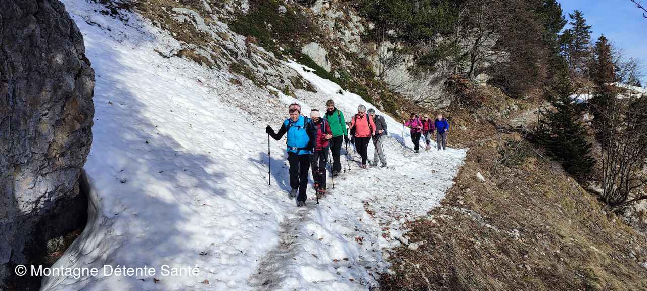 Les raquettes sont restées à la maison pour cette sortie à la croix de l’Alpes, mais les crampons ont été bien utiles sur les ¾ du parcours. Randonnée toujours aussi intéressante avec le passage sous les balmes, la montée raide dans le goulet pour sortir sur le plateau au sommet de la falaise.