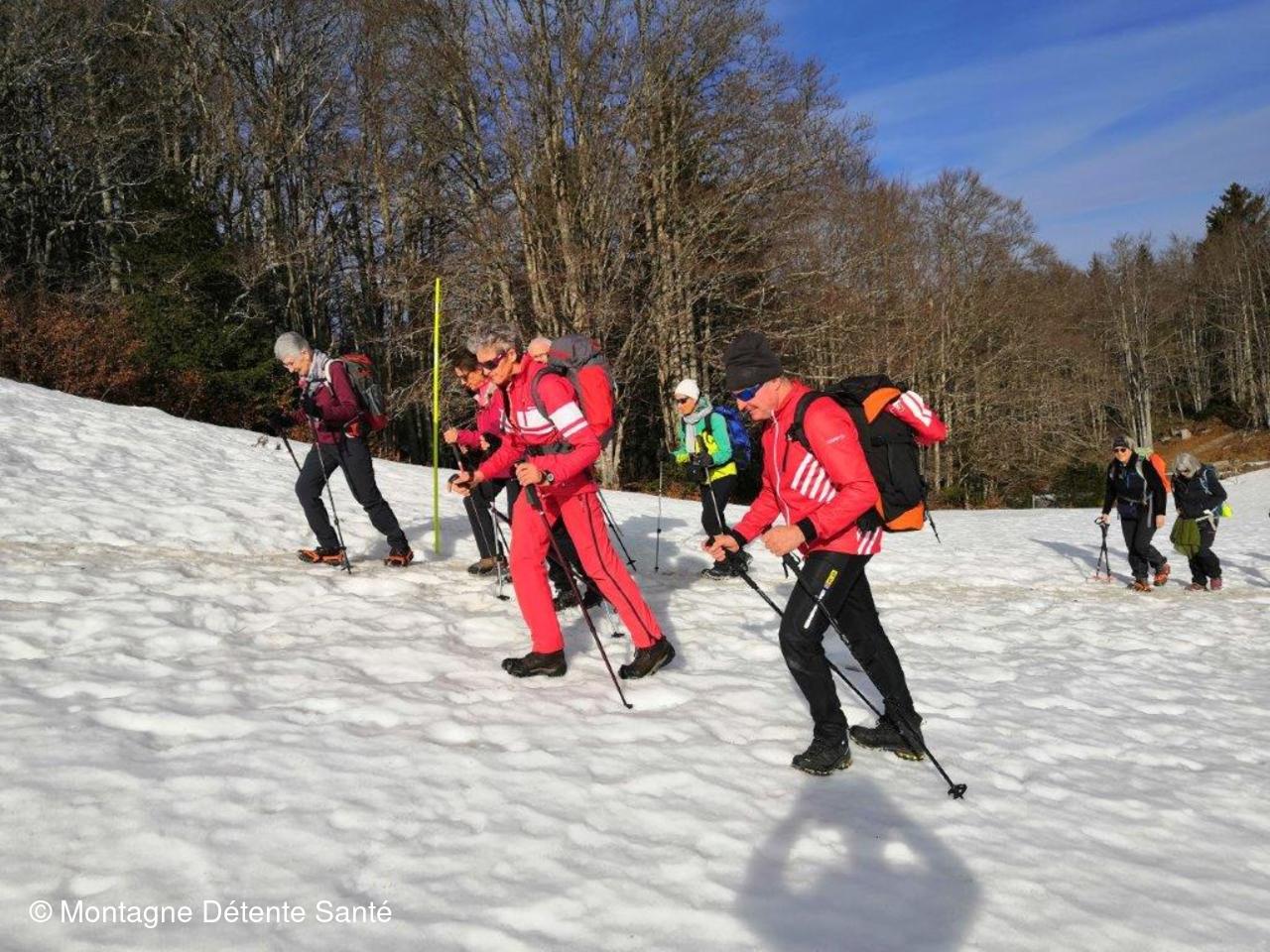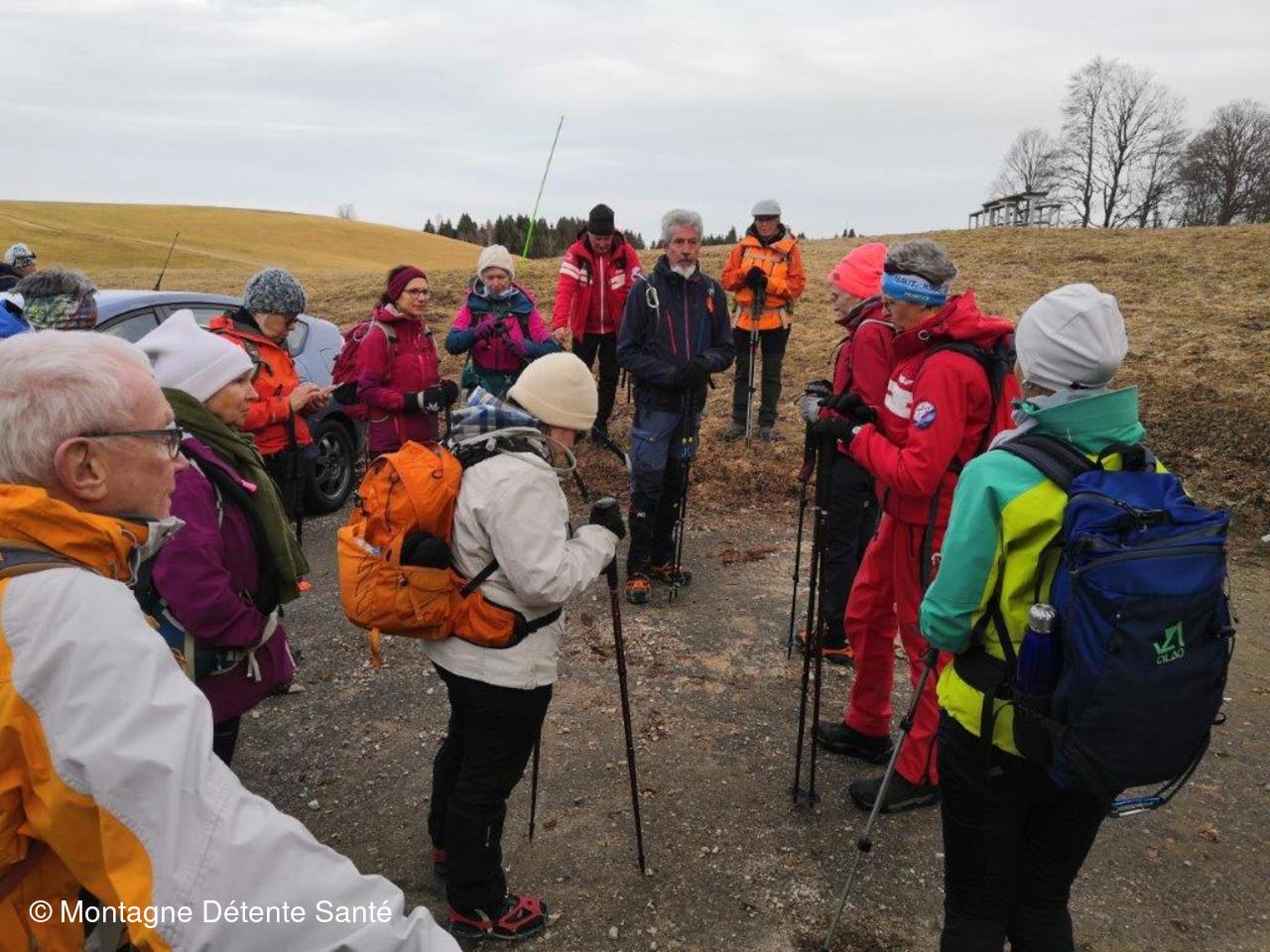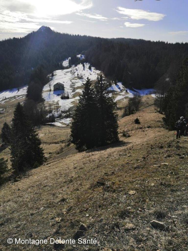 Après notre glorieuse ascension de la Dole et la défaite navrante de notre valeureuse équipe au quizz sur le Jura en soirée (nous soupçonnons un arbitrage partial) nous nous retrouvons ce matin pour le départ vers le parking de la Pesse pour approfondir notre connaissance de ce beau pays. Les buts de notre déambulation en crampons portent noms, le Crêt du Merle et la Borne du Lion.