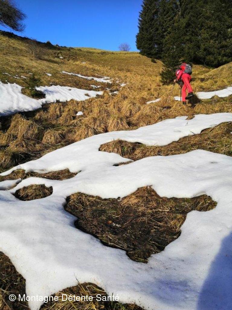 N comme Belvédère du Nerbier, où nous sommes passés aujourd'hui et comme Neige là malgré tout. Beaucoup moins abondante que prévu, elle couvrait suffisamment les paysages et craquait néanmoins sous nos pas.
