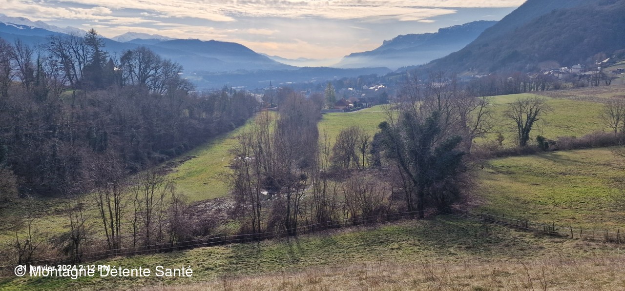 Nous prenons à gauche, petite montée en bordure de prairie, avec une vue magnifique sur la combe Savoyarde.
