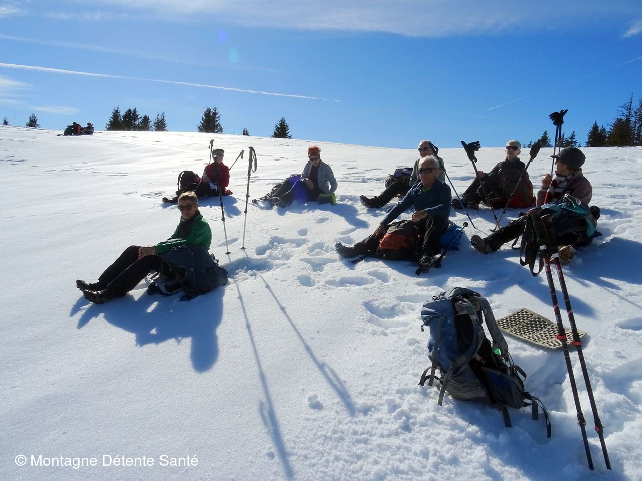 Depuis le Chard du Beurre nous avons une vue magnifique sur tous les massifs à 360°.Après la pause repas nous repartons en direction du col de la Lézette puis à nouveau passage au Plan Chardon par la trace du chalet Trollier.