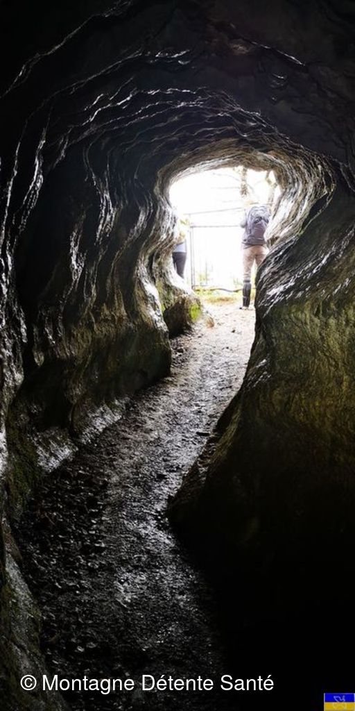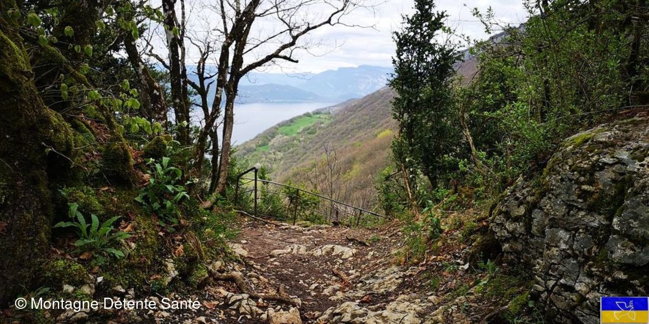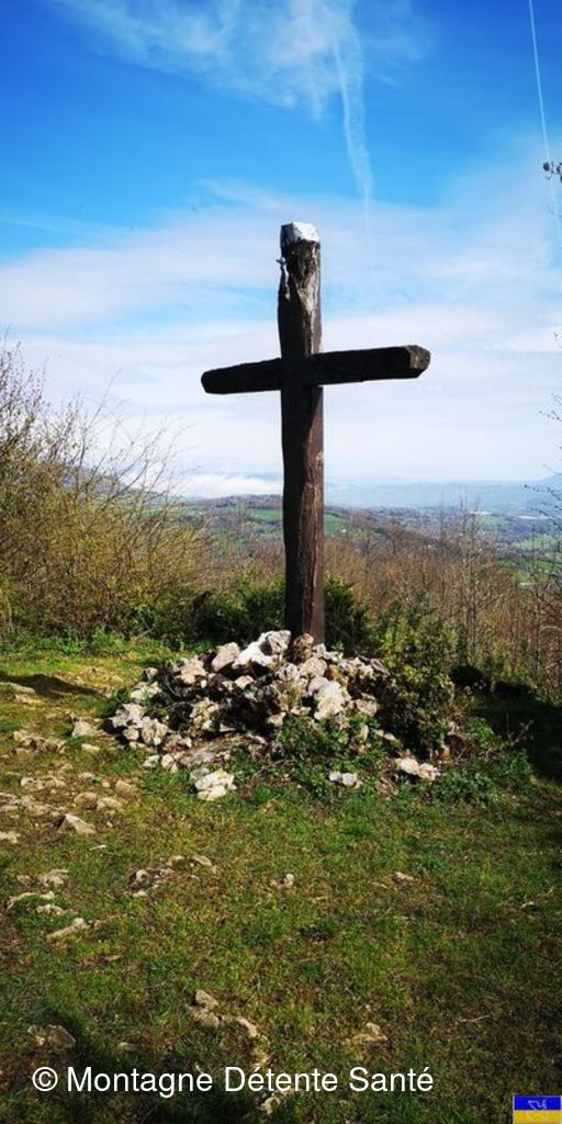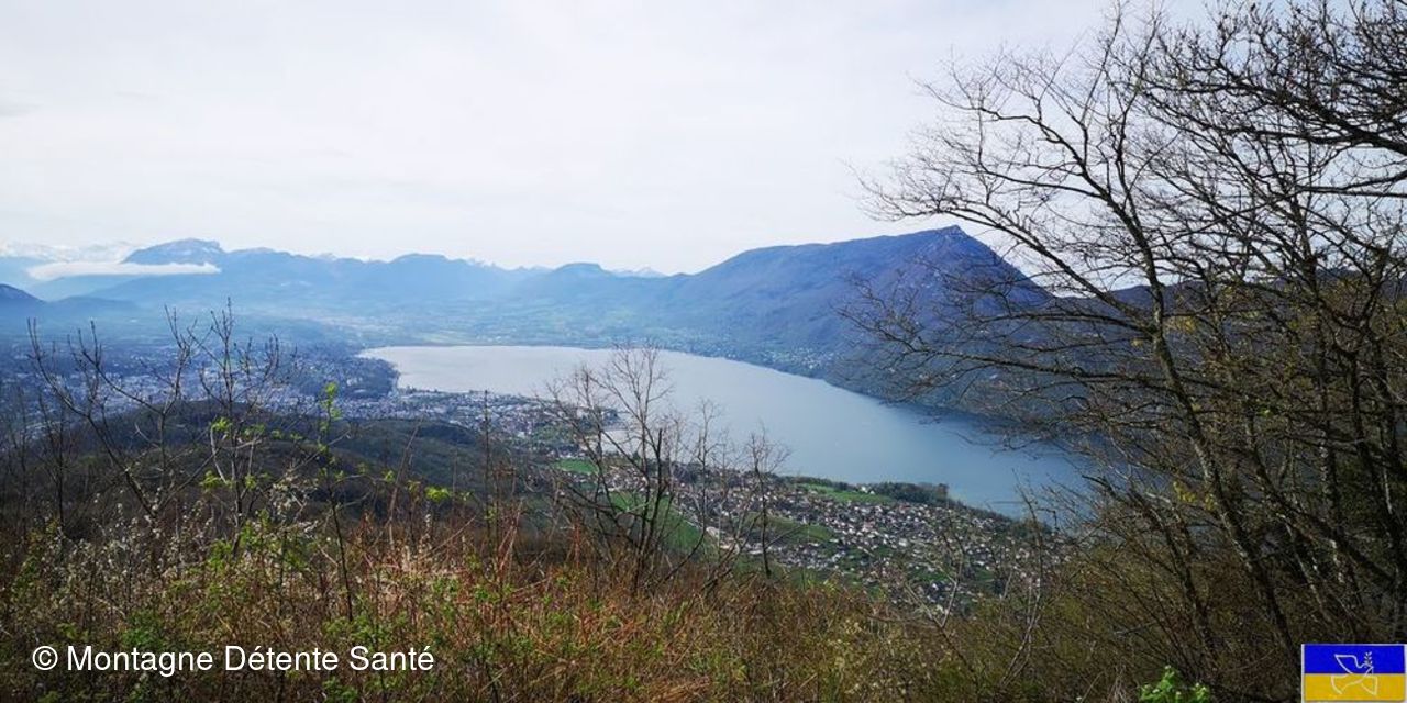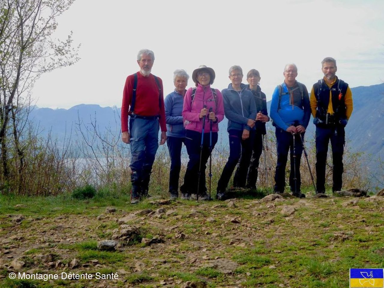 Cette fois-ci, l’itinéraire et l’intitulé de cette rando dans l’Avant Pays Savoyard étaient sensiblement différent de ce qui avait déjà été fait par le passé. En fait, le but est "La Croix de Meyrieu" avec un départ côté est de la montagne. Les pluies de la veille laissent ce matin quelques bancs de brouillard et un ciel voilé. L’ascension se fait par un belle piste forestière au milieu d’une forêt artificielle de résineux. Pas folichon à priori mais, ô combien facile et agréable, pas de boue, pas d’écoulement d’eau non plus. Dans ces conditions, la nouvelle croix est atteinte exactement selon le tableau de marche. Magnifiques vues sur le lac et les montagnes au loin d’un côté ainsi que la plaine entre les lacs qui a donné son nom à la nouvelle commune de l’autre. Un milan cherche son repas. Puis, après une descente un peu glissante, l’ancienne croix nous apparait, plus belle mais en beaucoup plus mauvais état. Enfin, pour l’instant elle tient encore fièrement debout. S’ensuit une descente pas forcément très raide mais bien glissante à cause des pluies et du passage de vététistes courageux qui venaient de la gravir. Passage par la Grotte des Fées, frontale obligée, mais parcours spéléologique rapidement interrompu par la hauteur sous plafond incompatible avec notre désir de rester propres le plus longtemps possible. Casse croûte puis retour vers les voitures après deux tentatives infructueuses pour trouver le bon chemin : il fallait en fait traverser la pâture pour récupérer le sentier à la sortie… Descente raide, glissante également, mais crampons aux pieds cette fois, tout se fait facilement. Et enfin un peu de chemin «plat» pour finir. Les premières fleurs du printemps furent l’occasion de révision ou de découverte de quelques notions de botanique.