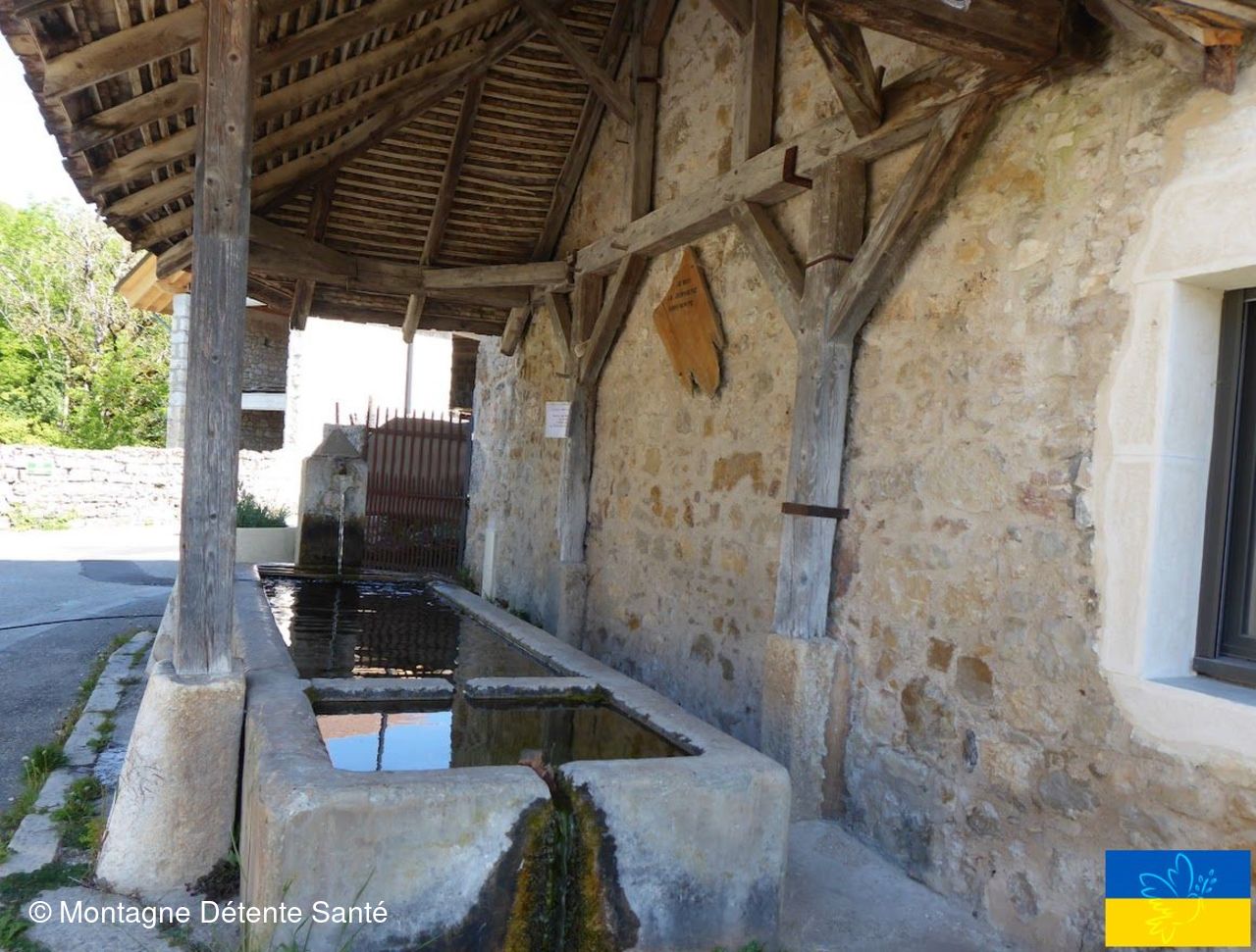 Visite de la statue de la Vierge qui surplombe le village, avant de rejoindre Massignieu et son lavoir rénové via le sentier balcon puis les villages de Champdossin, Belmont.
