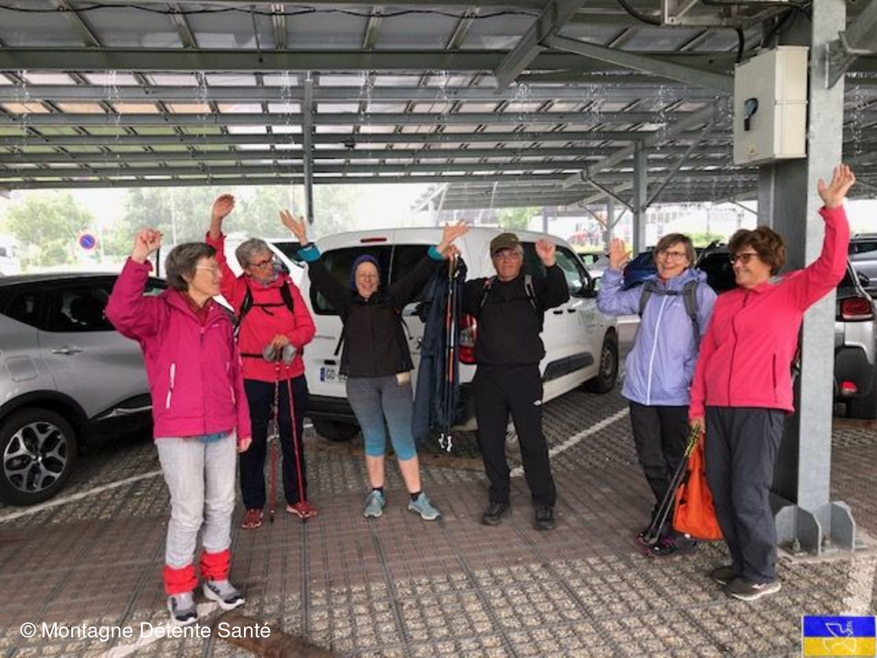 La météo prévue avec pluie et peut-être orage, n'était pas favorable pour une sortie marche nordique. Malgré tout, nous nous sommes retrouvés sous le toit arrosé de l'aire de covoiturage avec comme 'deal' de nous concerter si oui ou non, nous étions partant pour un marche cet après-midi.