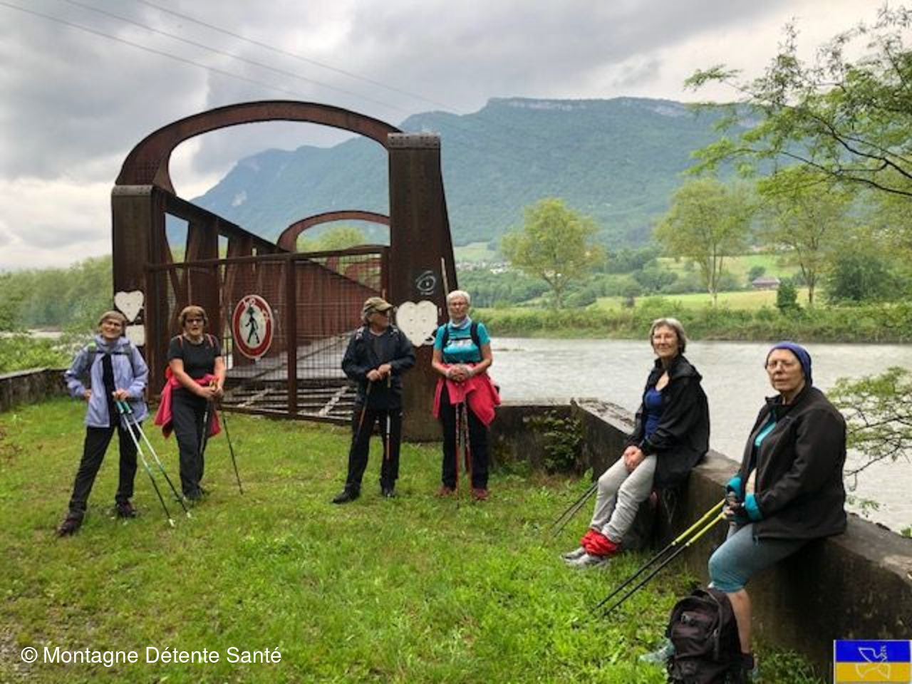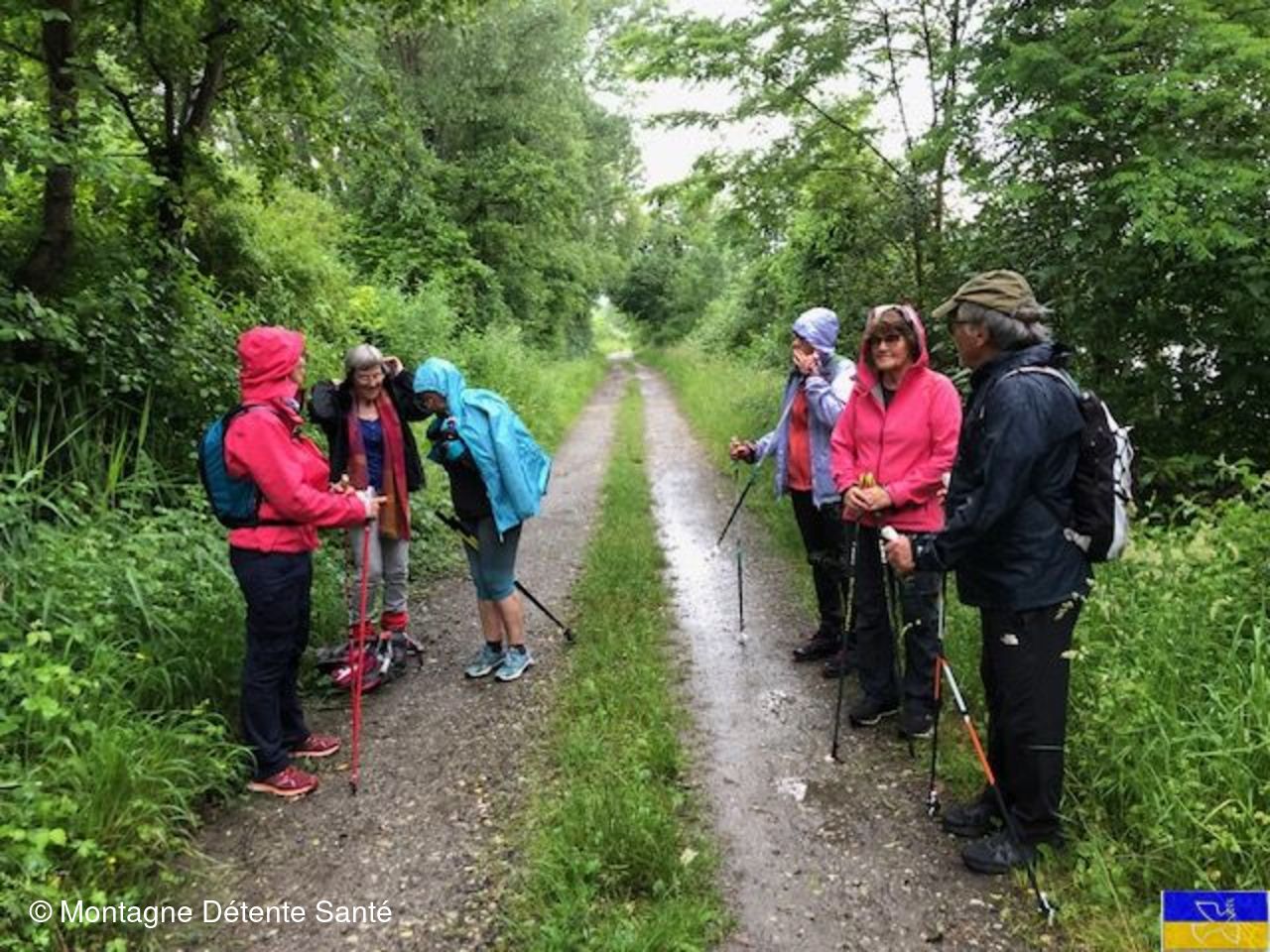 Fabienne, venant de Ste Hélène du Lac, nous annonçait qu'elle venait d'essuyer une grosse pluie d'orage, rendant le tour de La Chavanne impossible car les sentiers allaient être mouillés et glissants. Il nous restait donc comme seule alternative de suivre le chemin de la traditionnelle digue gauche de l'Isère. Ce projet fut accepté à l'unanimité.