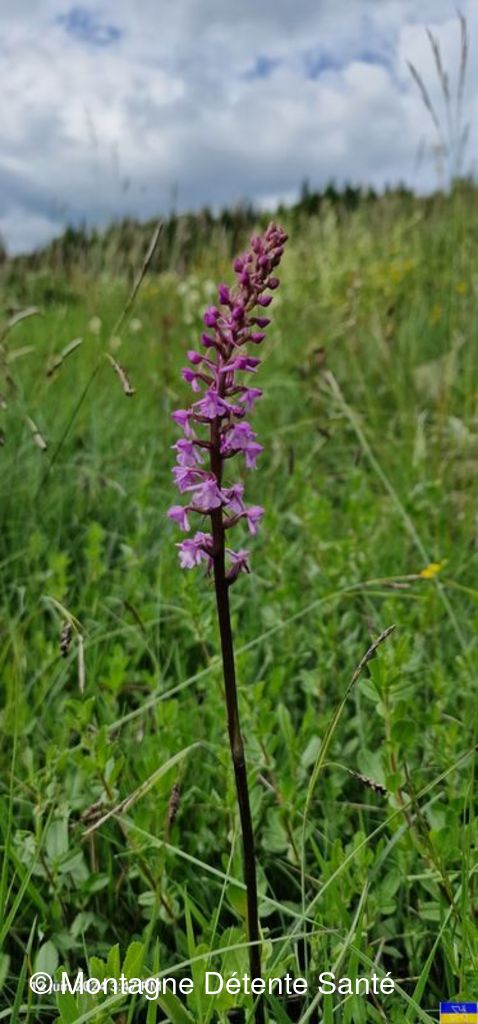 Nous continuons sur un chemin forestier en admirant les magnifiques fleurs de saison  : orchidée , Brunelle commune, Ancolie des Alpes et Eglantiers commun...