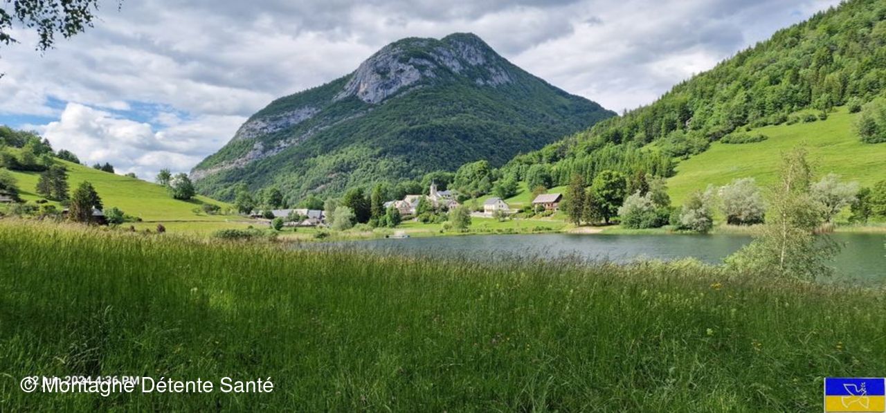 Nous redescendons en direction du lac, en faisant un détour par un belvédère d'ou nous admirons la vue magnifique sur le village et le lac, derrière en fond de tableau le magnifique Granier.
