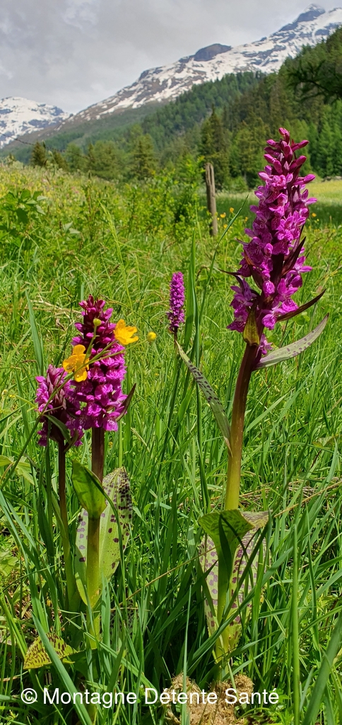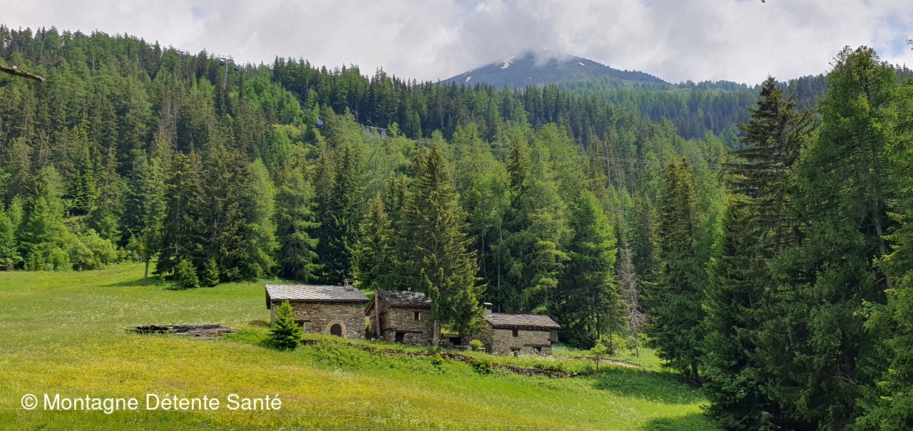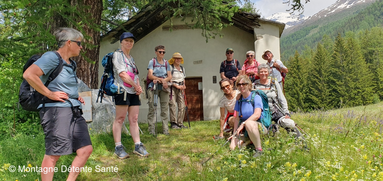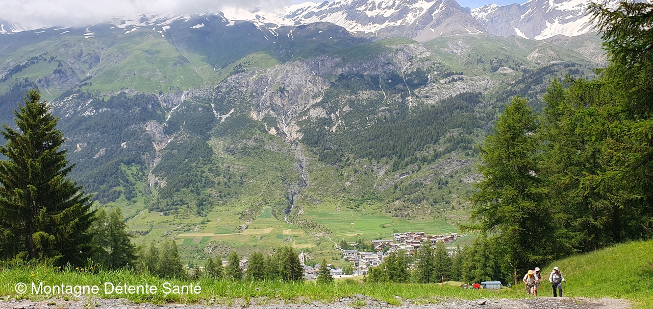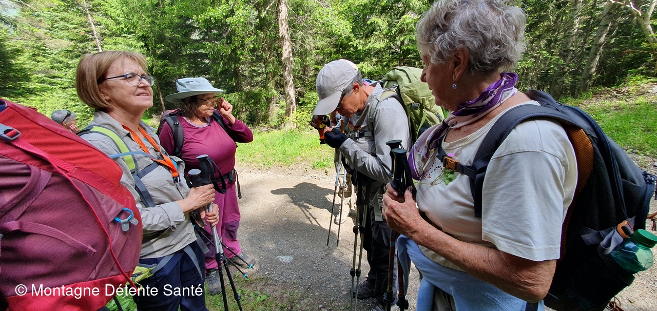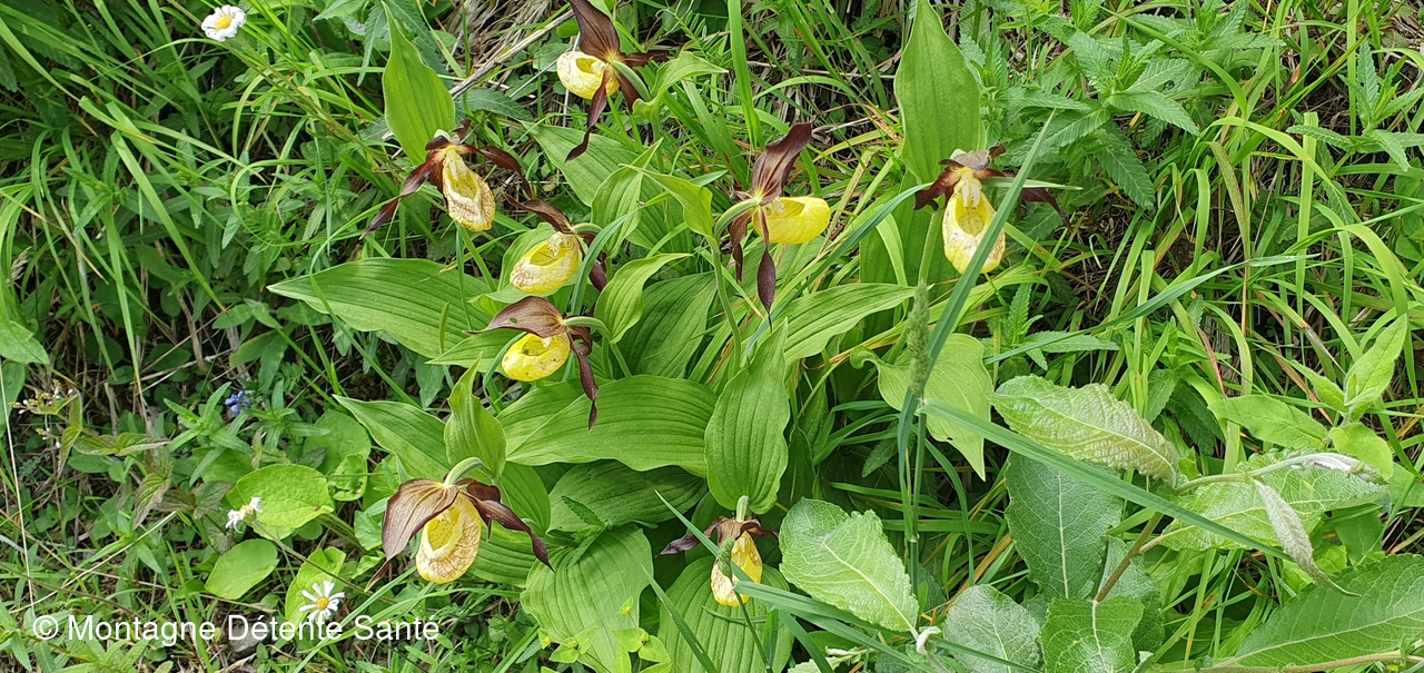 Matin : de Termignon à Lanslevillard, chemin du petit bonheur jusqu'au CIS. Suzie et Denis nous y attendaient pour pique-niquer tous ensemble. Chacun a botanisé plus ou moins selon son envie ... beaucoup de belles surprises, parmi lesquelles des clématites des Alpes et un magnifique bouquet de sabots de Vénus, qui faisait du stop sur le bord du chemin ! Petit café après le déjeuner puis nous nous sommes séparés, d'un côté les botanistes vers, puis sur le chemin de la Ramasse et les marcheurs sur le chemin des gardes avec Suzie comme guide. Superbe après-midi, succession de chapelles, St Pierre, St Genix avec son petit hameau suspendu à la pente, rencontre avec un mélèze tricentenaire de 32 m de haut (le plus haut de Lanslevilard) puis une succession de cascades avant de redescendre au centre.