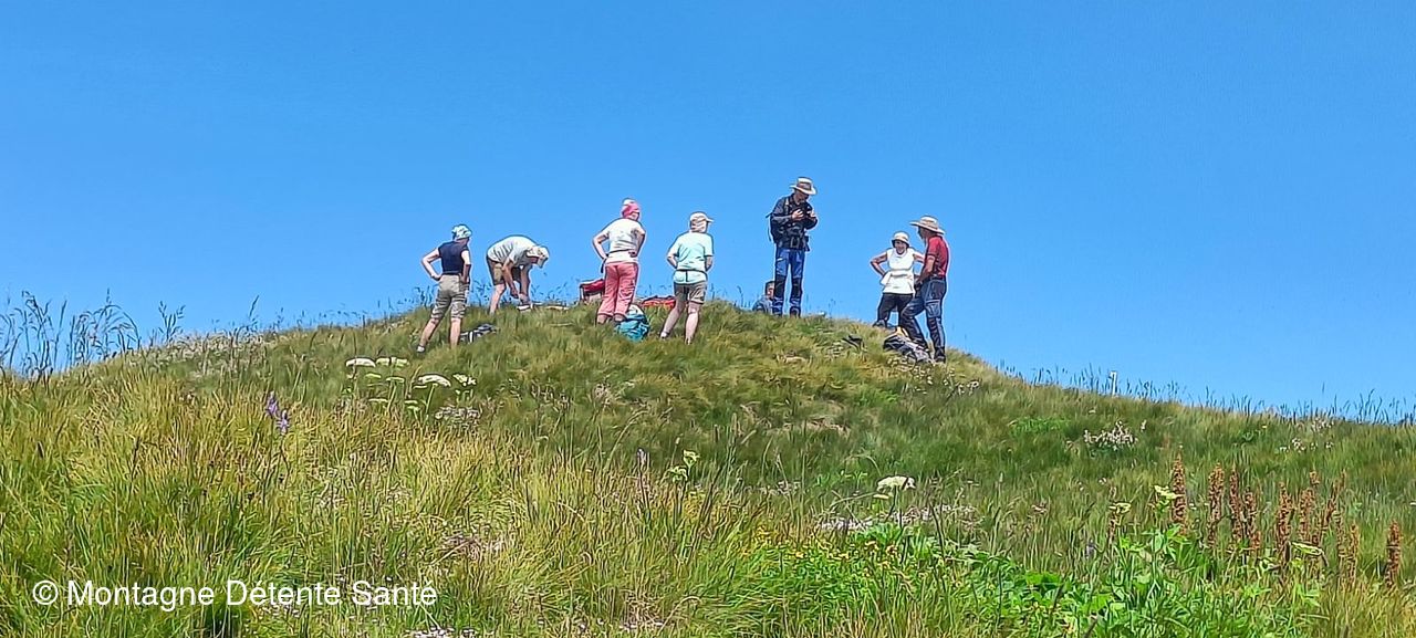 Vers 13h10, nous amorçons notre descente avec un arrêt à la table d’orientation où les nuages nous ont empêché de profiter des paysages mais pas de faire la photo de groupe.