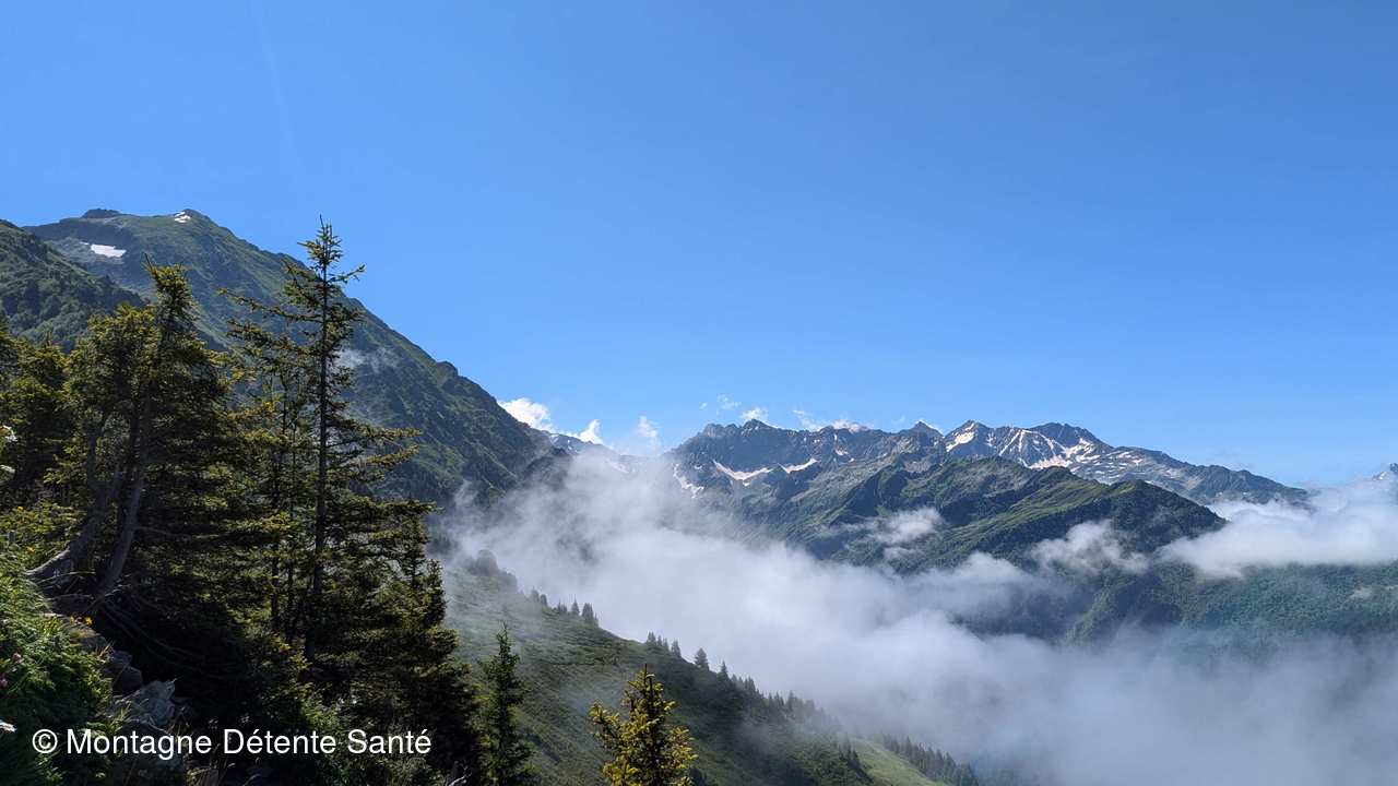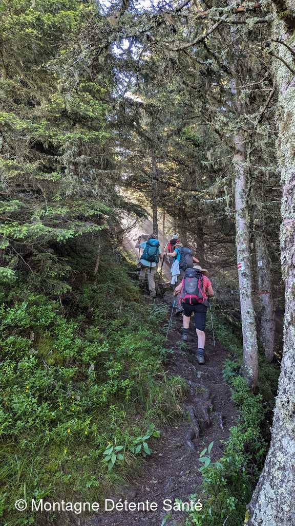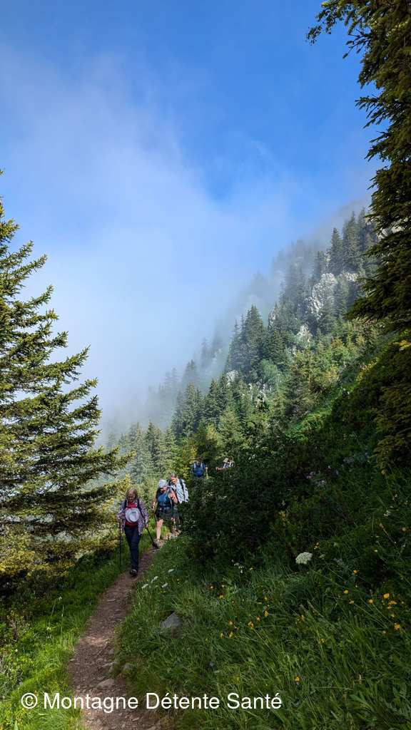 Au débouché de la forêt, le sentier technique et un peu piégeux s’est adouci et nous avons pu apprécier les alpages en pleine floraison.