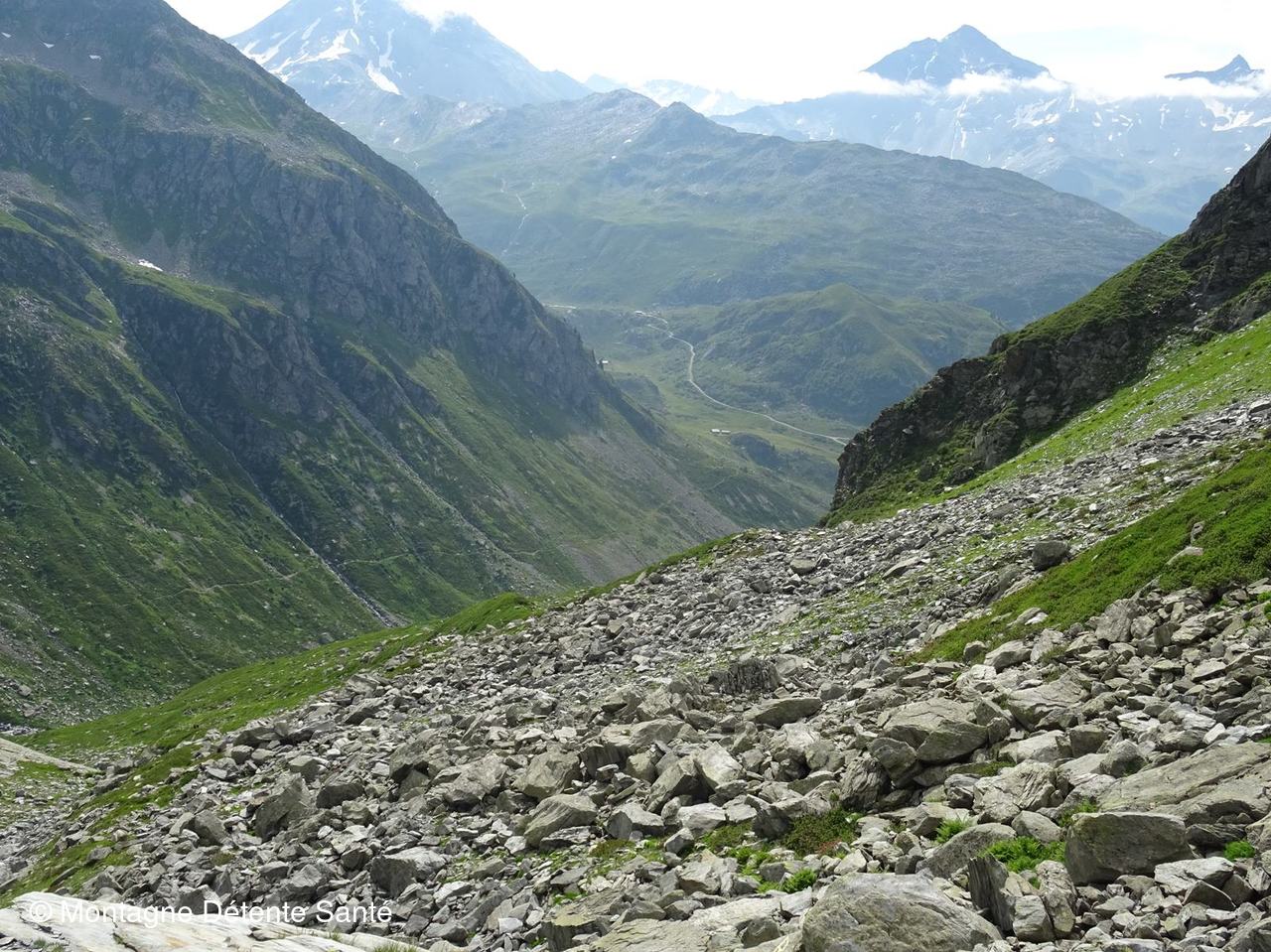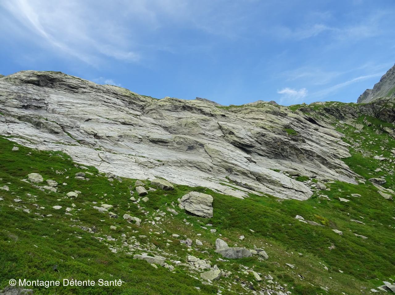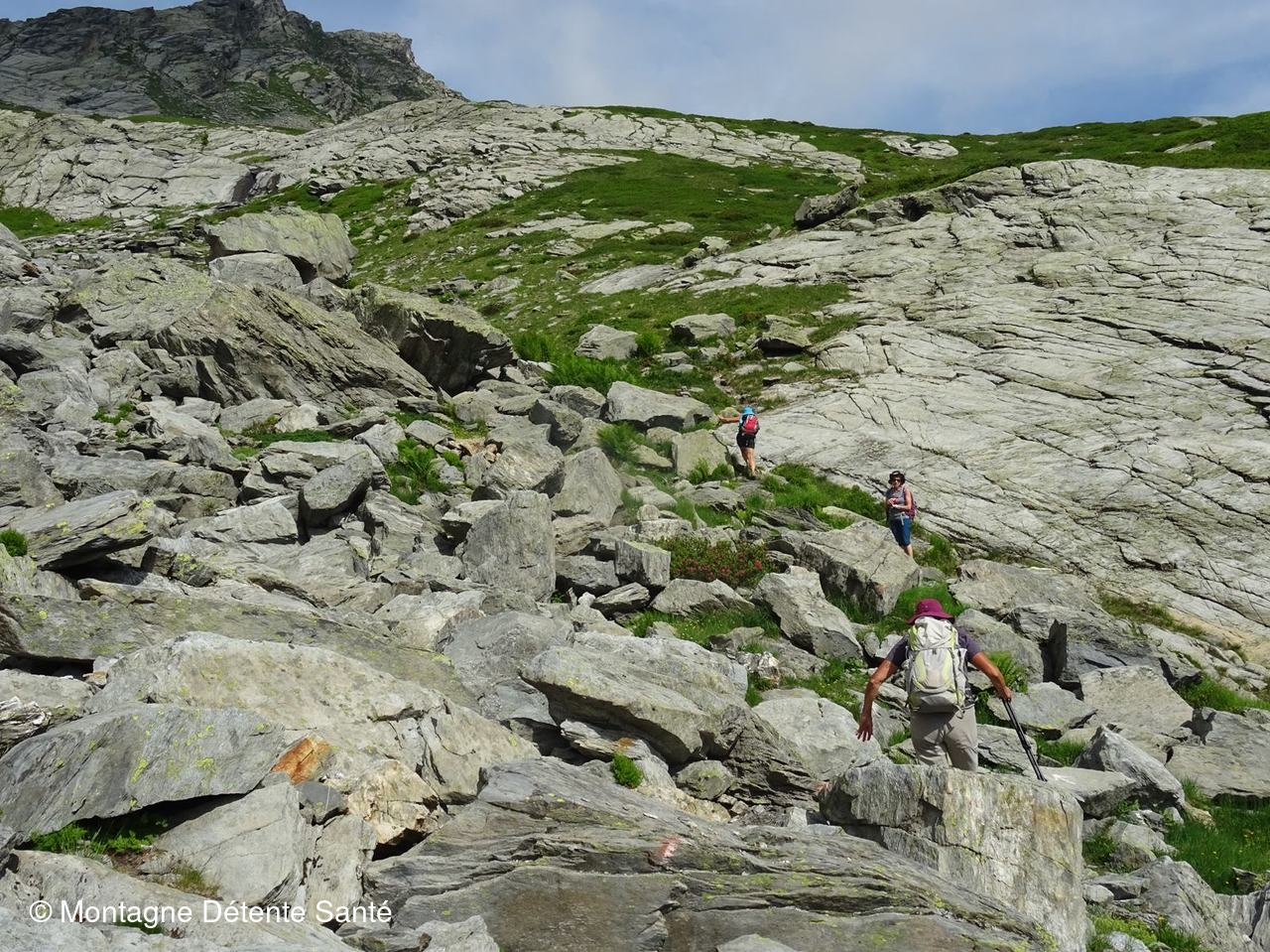Départ du hameau de la Savonne, par un sentier qui serpente dans un large vallon à proximité du torrent de la Louie Blanche. Arrivés à environ 2000 mètre, deux possibilités s’offrent à nous pour rejoindre le col : soit prendre le sentier en direction de la Louie Blanche ou prendre un sentier très raide qui serpente à travers des blocs de rochers.