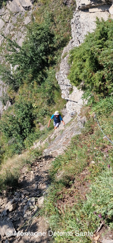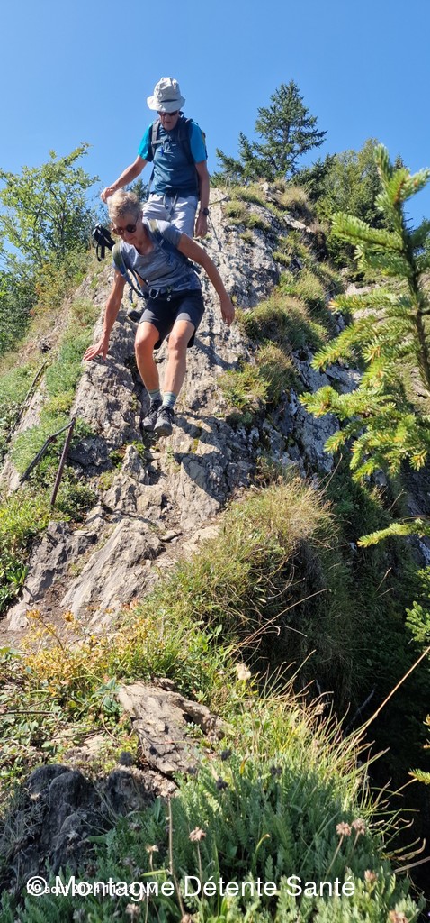 Nous repartons en direction d'un sentier en crête, nommé le Pas de l'Ane, passage technique, équipé de cables et de marches.
