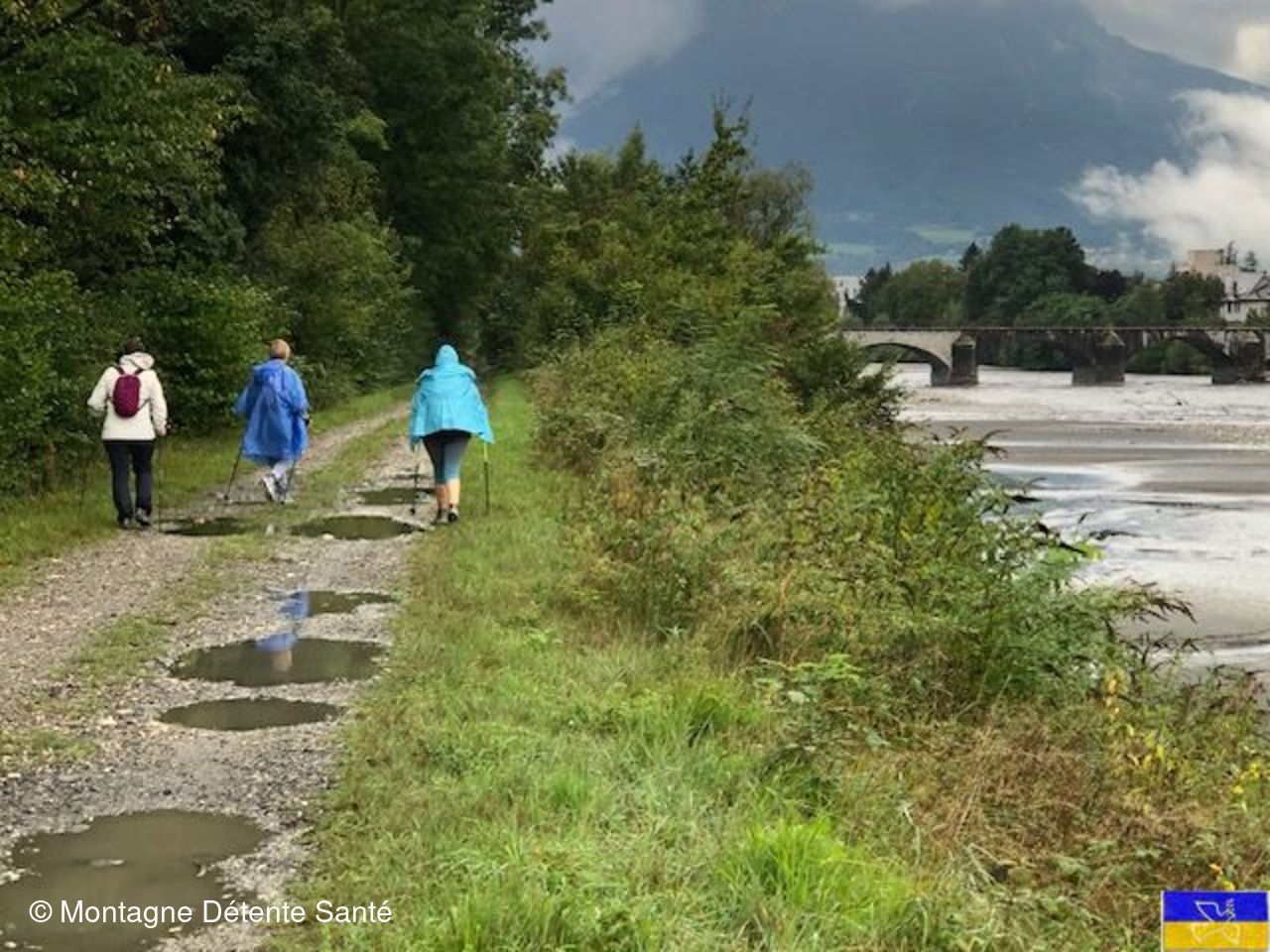 La sortie le Tour de Cruet ayant été annulée pour cause de pluie annoncée, un appel à volontaire avait été lancé pour les courageux avec le choix d'un parcours immédiatement accessible, celui du chemin de la digue gauche de l'Isère dans le sens Montmélian Albertville . Il a l'avantage d'être modulable et d'être plat. Il permet une large marge de progression pour les débutants. 4 personnes repondèrent à notre appel : 2 débutantes et 2 animateurs. Au départ donc, chaque débutante se retrouvait presque avec son animateur personnel.