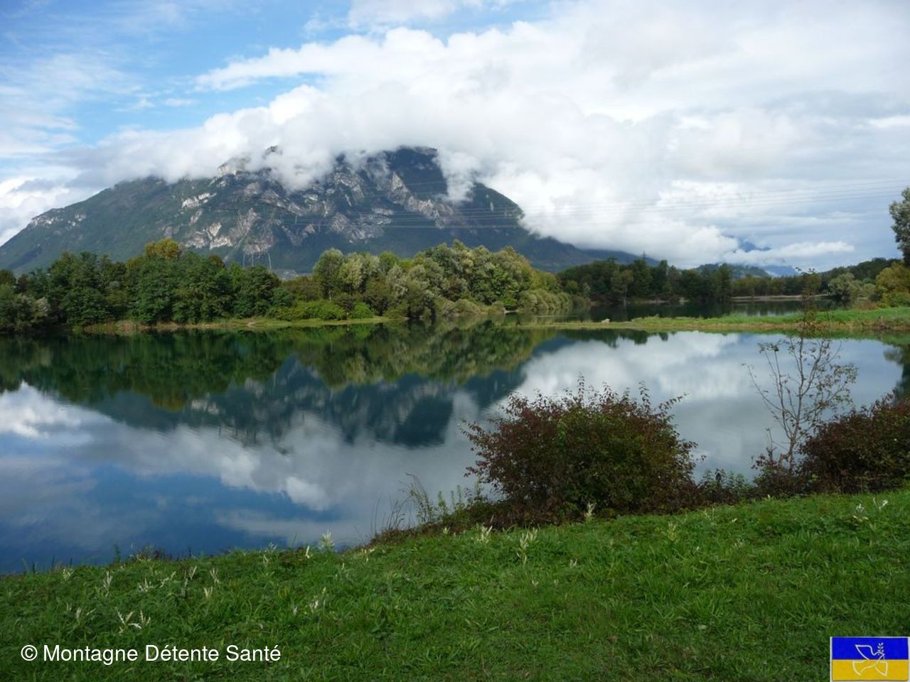 Les kways enfilés, nous bravons la pluie pour nous diriger sur la digue de l'Isère direction les lacs de Francin.