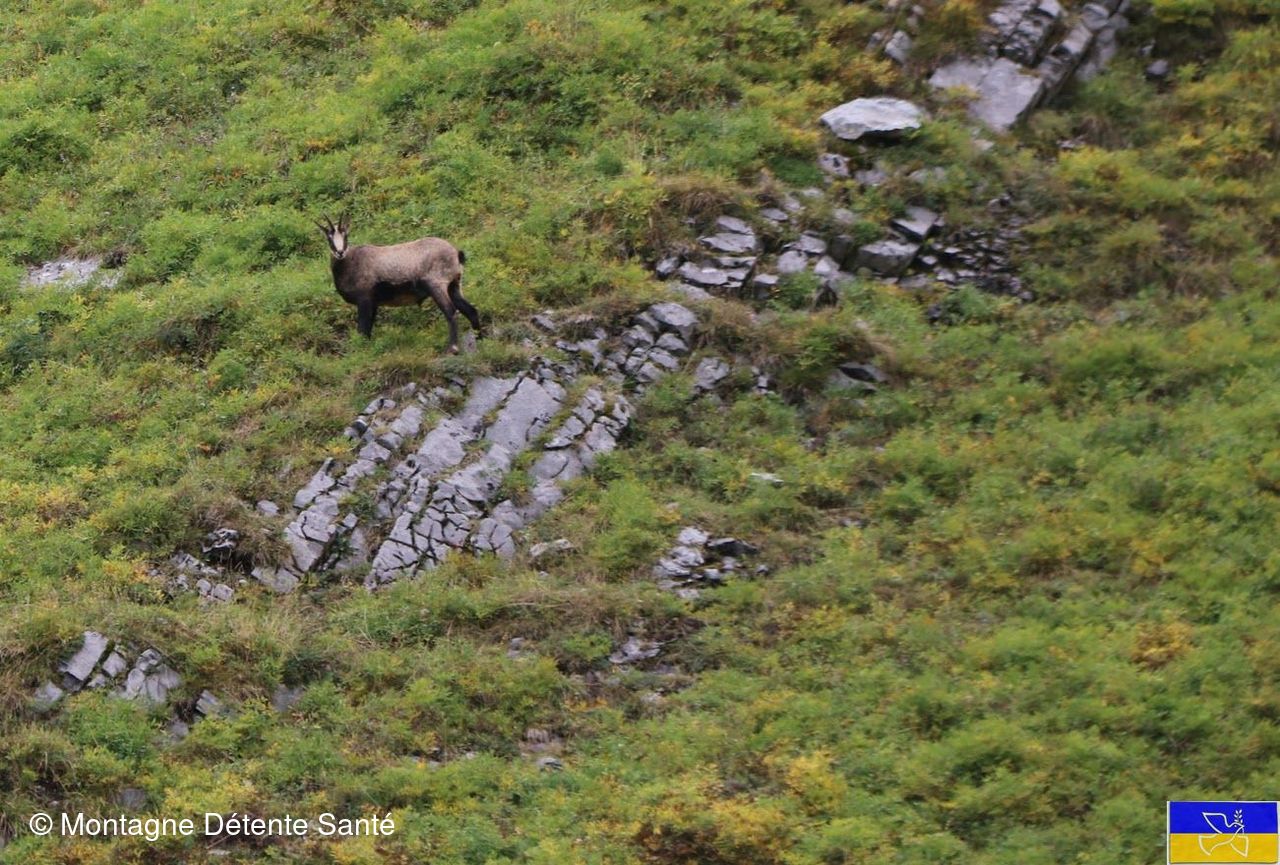 A la sortie de la forêt, nous apercevons la "Cham'Arche", sorte de filet installé sur un mat, dont le rôle est de capturer des chamois pour leur suivi vétérinaire, puis un chamois, puis 2 puis ... 70, il y en avait partout !