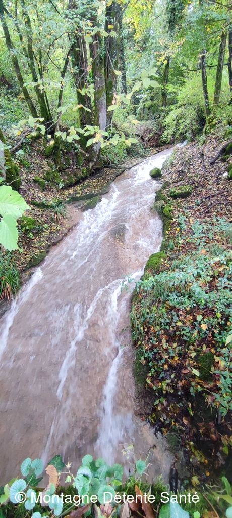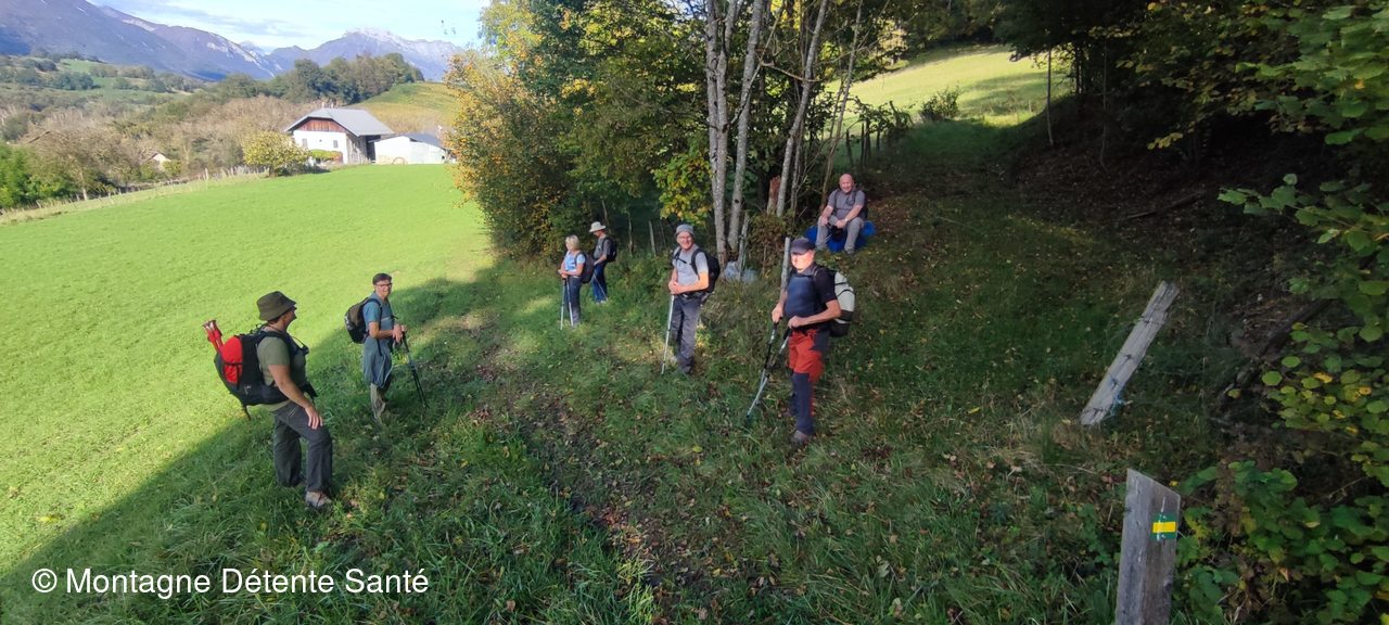 Nous sommes revenus à notre point de départ par le hameau du Mollard en empruntant un petit sentier très humide et bien glissant où les bâtons ont été très utiles et il a fallu être vigilant pour rester debout.
