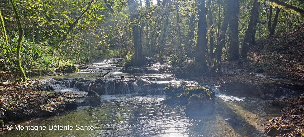 Nous traversons la D41 au niveau de l'impasse du Cornin (maison Artist'au chat) puis prenons à gauche, à la courbe, pour rejoindre la route de "la Muraz" que nous prenons par la droite pour arriver au hameau du même nom. Nous suivons à droite le chemin qui descend jusqu'en fond de vallon où coule le "Ruisseau du Colliard".