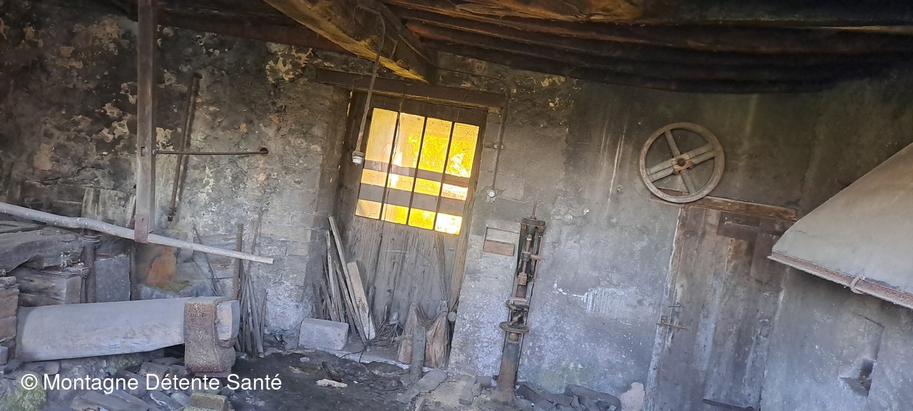 Nous continuons jusqu'à "Grange Brulée" puis tout droit jusqu'au hameau de "Le Martinet". Celui-ci doit sont nom au fait qu'on y travaillait le métal dans une forgerie. Un batiment où sont encore présents le four de forge, l'enclume et le gros marteau (Marculus du latin Marcus ou Martulus du bas latin Martus) qui venait battre le fer grace à la force motrice de l'eau. La roue à aubes est encore présente derrière le bâtiment. Un bout de patrimoine qui part en décrépitude.