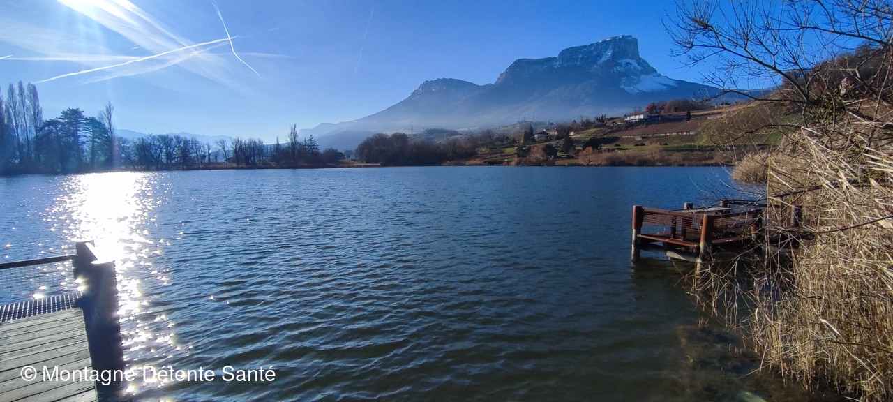 15 adhérents se sont retrouvés sur la commune de Porte-de-Savoie pour la dernière sortie de l’année. Après avoir traversé le bourg nous sommes descendus en direction du lac de St André, l’absence de vent nous a permis d’admirer le Mont Granier qui se reflétait très nettement à la surface du plan d’eau.