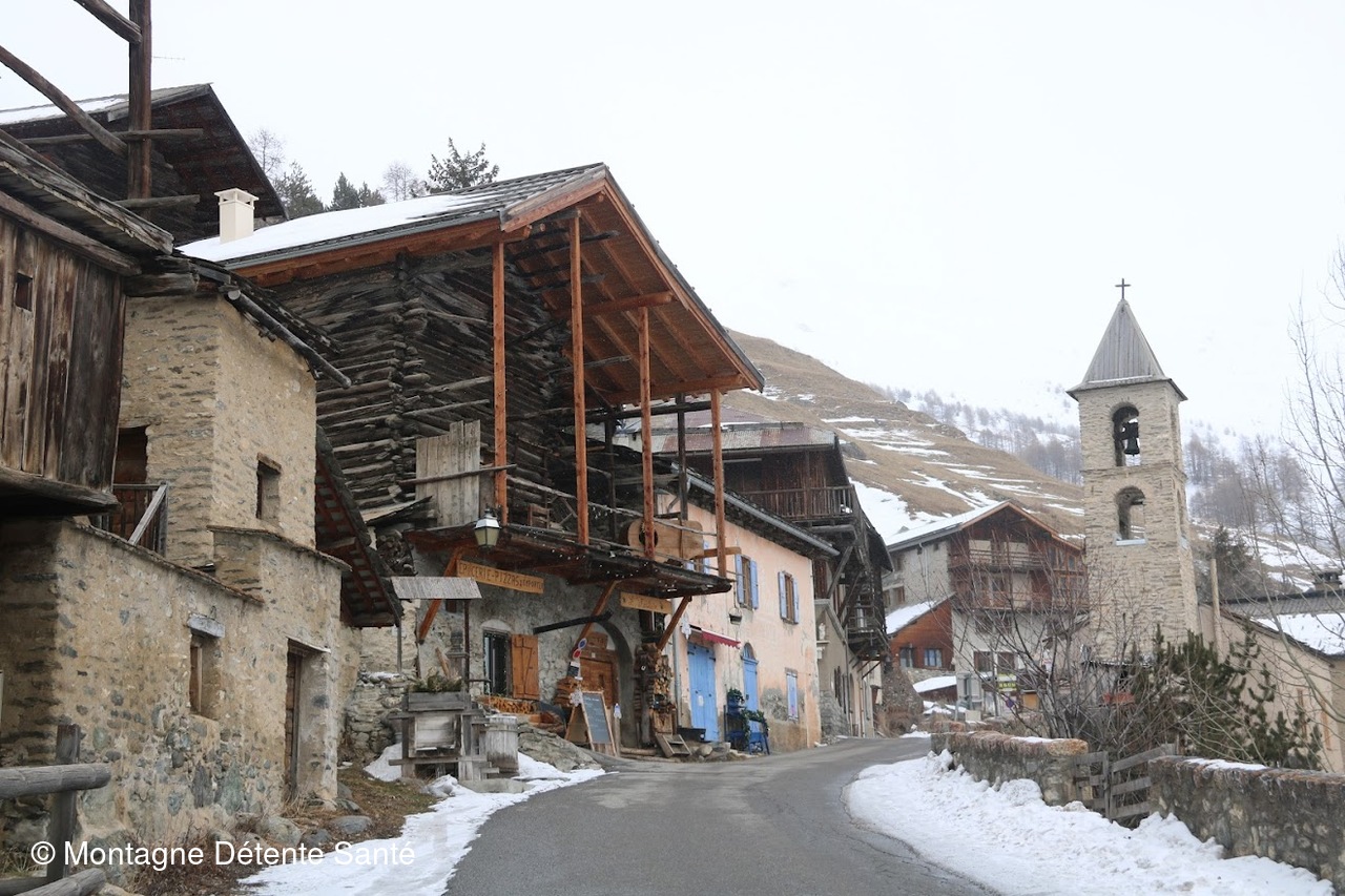Pour cette première journée, départ pour une petite boucle autour de St-Véran au départ de notre hébergement "La Baïta du Loup", option sans raquettes avec seulement les crampons.