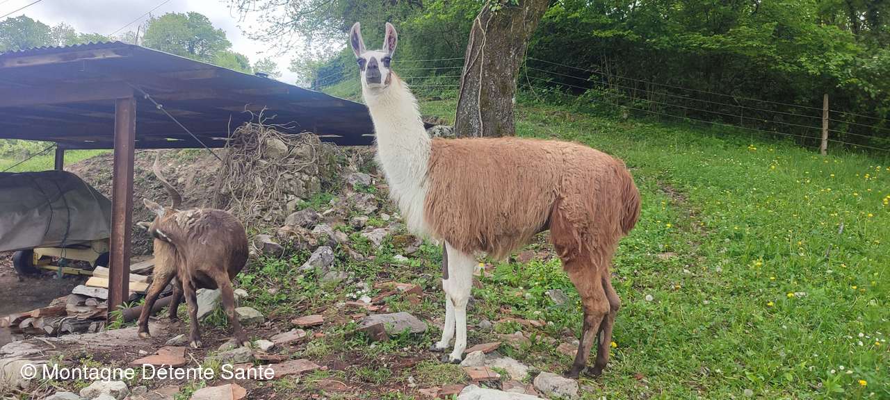 Retour par Les Fontanettes et les hauts de St André où nous avons fait un petit arrêt pour dire bonjour à quelques lamas broutant paisiblement et curieux de voir arriver autant de public.