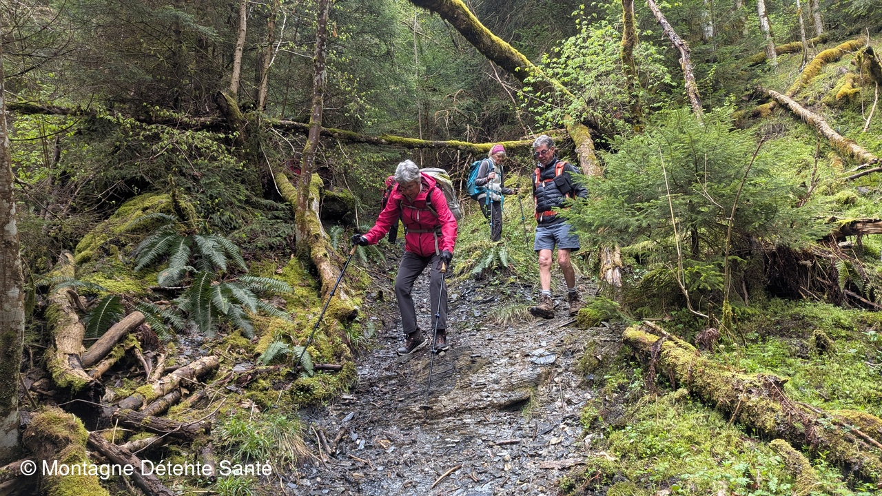 Le groupe du jour comportait 9 personnes décidées à découvrir cette randonnée forestière aux confins de la vallée des Huiles et des Hurtières. La marche proposée partait du col de Champ-Laurent pour une boucle passant par le Mont Troncheret, la tourbière de Montendry, le fort de Montgilbert, le hameau du Sappey, le Mont Magnolet et le Mont Fauge.