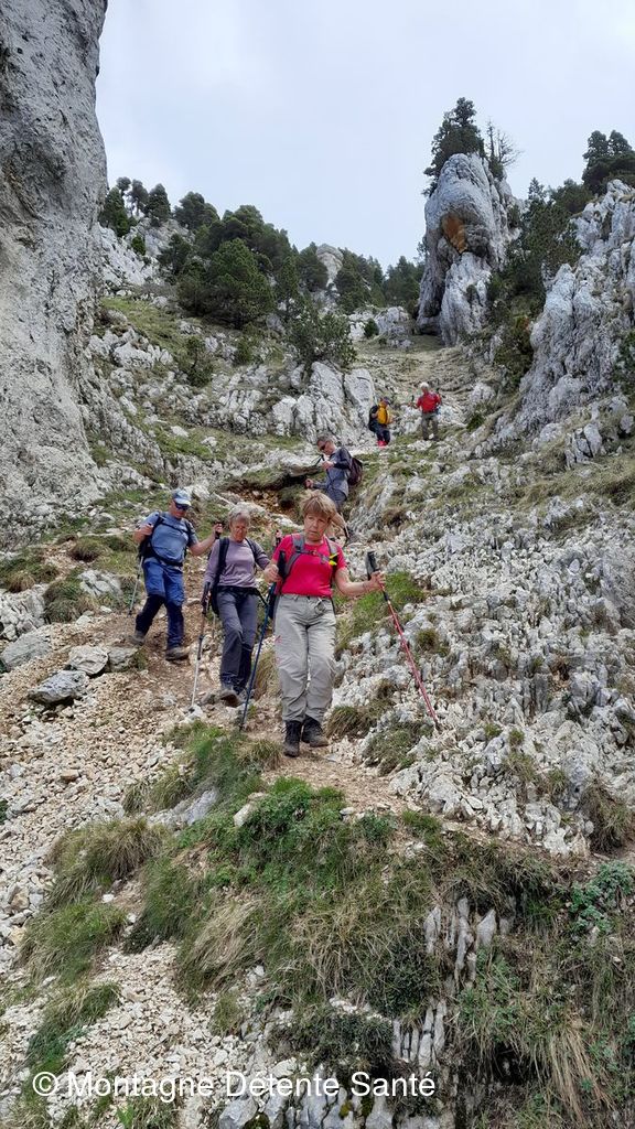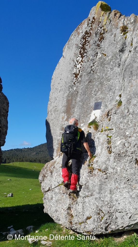 Après la pause pique-nique le retour s’effectue par la Balme à Colon sur un sentier bien raide qui exige beaucoup de vigilance mais qui permet d’admirer les aiguilles de calcaire qui jalonnent le parcours et la verticalité des falaises. Nous atteignons la grotte impressionnante par sa taille qui renferme l’un des plus importants gisements d’ours des cavernes. Nous la traversons et poursuivons la descente jusqu’au parking.