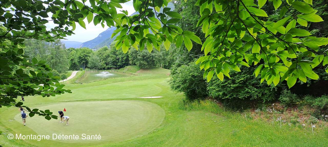 Nous repartons et prenons la direction Nord-est pour monter au Belvédère de la Crête. Nous prenons la direction nord pour descendre vers Écharvine. Puis irons à gauche pour rejoindre la boucle du sentier découverte. Celui-ci longe le terrain de golf pour rejoindre le chemin des Sablons. Nous bifurquons à gauche et arrivons sur le chemin de la Vallière pour retourner sur Menthon-Saint-Bernard.