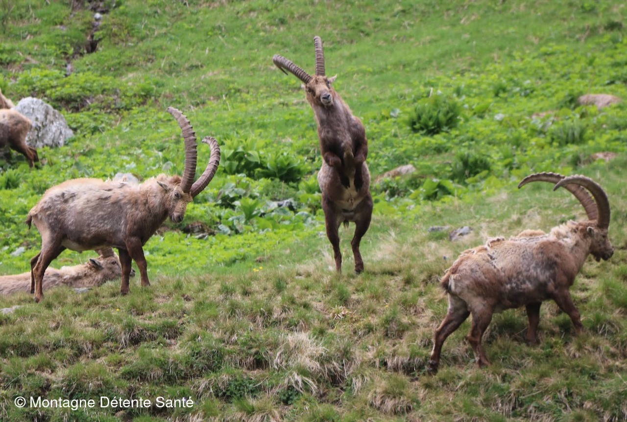 Départ du hameau de Friburge, nous longeons le doron de Champagny jusqu'au Laisonnay d'en haut pour arriver au pied de la très belle cascade du Py. La montée est assez raide mais régulière, nous atteignons rapidement le premier replat au dessus de la cascade, continuons dans le vallon et apercevons nos premiers bouquetins. Nous traversons le verrou rocheux du Mollard et accédons au dernier vallon qui conduit au refuge de Plaisance. Et là, .... des dizaines de bouquetins nous attendaient, certains paissaient tranquillement, nous ignorant quasiment, d'autres, plus joueurs s'exerçaient pour des combats futurs