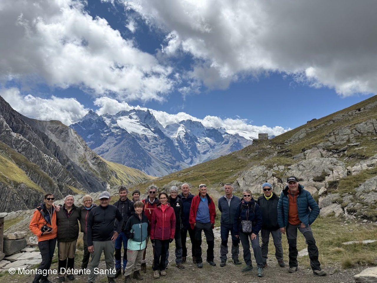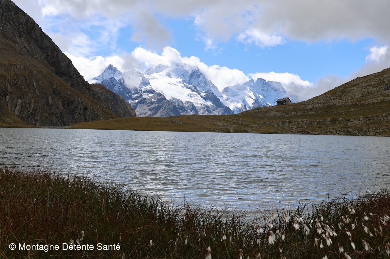 Départ dans la brume depuis le hameau des Hyères sur la Grave, nous empruntons le chemin jusqu'au hameau de Valfroide. Toujours l'habitat typique avec notamment les maisons avec leurs bordures de toit en pas de moineaux ou pignons à redents. Le chemin devient sentier avec le torrent du Maurian en contrebas. Montée tranquille qui devient rapidement plus prononcée, jusqu'à l'arrivée au refuge du Goléon. Entre temps, les nuages ont pratiquement disparu et une des premières fois de la semaine, nous avons sous nos yeux la Meije et tous les sommets alentours saupoudrés de neige fraiche. Nous poursuivons jusqu'au lac du Goléon puis le replat d'Amont jusqu'au refuge Carraud où nous prendrons notre pique-nique sous le regard des Aiguilles d'Arves et de la pointe du Goléon.