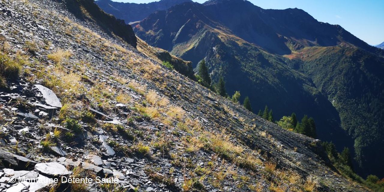 Puis ce fut la descente pour rejoindre les voitures avec à notre gauche ces champs d’ardoises qui brillent au soleil.