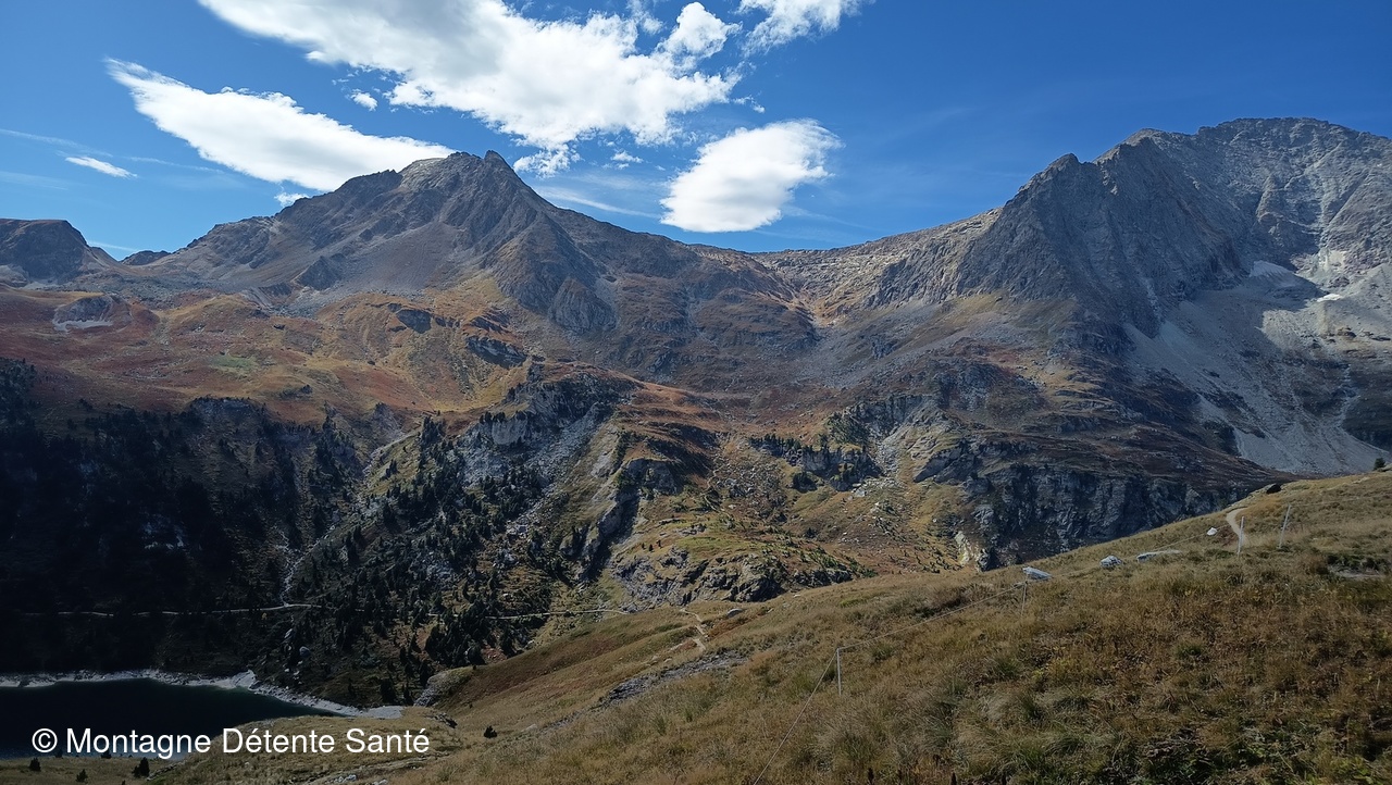 Paysages alpins avec un panorama de toute beauté où l'on en prend plein les yeux, avec des sommets plus proches, la Dent Parrachée 3695 m, Pointe de la Fournache 3642 m, Pointe de l'observatoire 3013 m, Pointe de l'Échelle 3418 m, Petit Rateau d'Aussois 3100 m, Rateau d'Aussois 3128 m et d'autres un peu plus lointains mais dans le collimateur visuel : Aiguille de Scolette 3506 m, Pointe de la Norma 2922 m, La Belle Plinier 3086m, Pointe de Longe Côte 3104 m et la liste est longue si je continue...