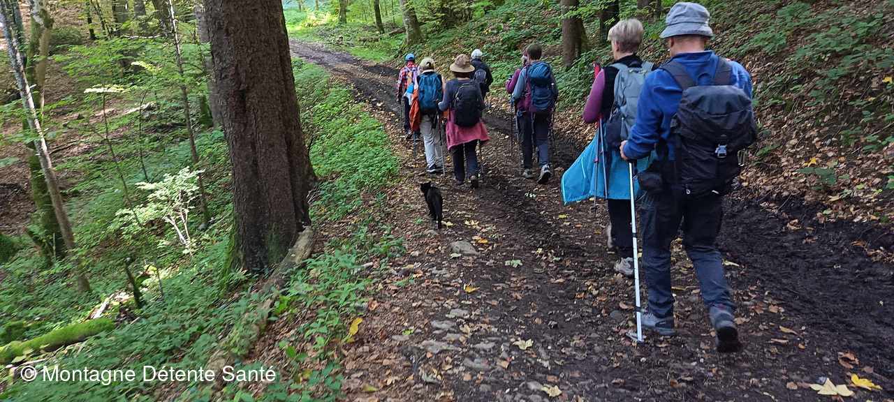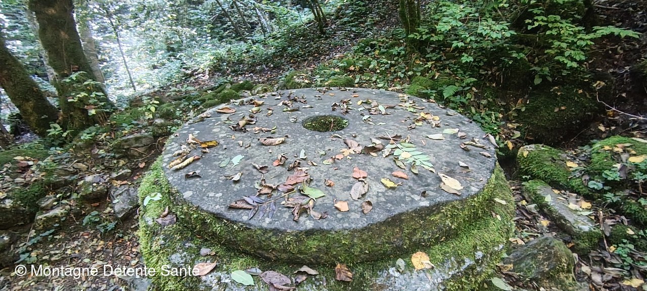 Puis le sentier encore humide et piégeux plonge vers l’ancien moulin de Porte-Traine où nous avons pris le repas de midi.