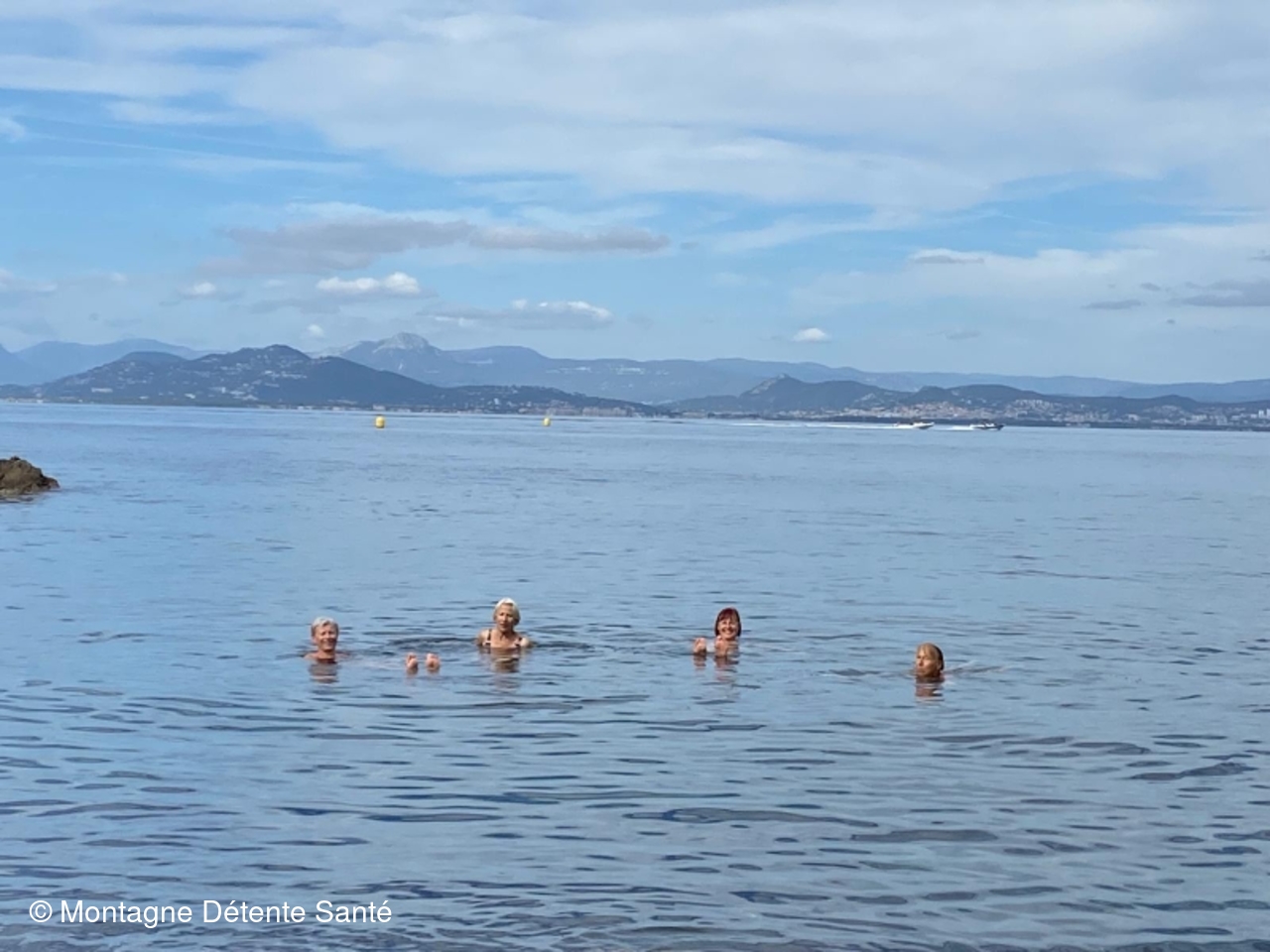 Pique-nique en contre-bas de la pointe Medès, au bord de l’eau. Baignade.